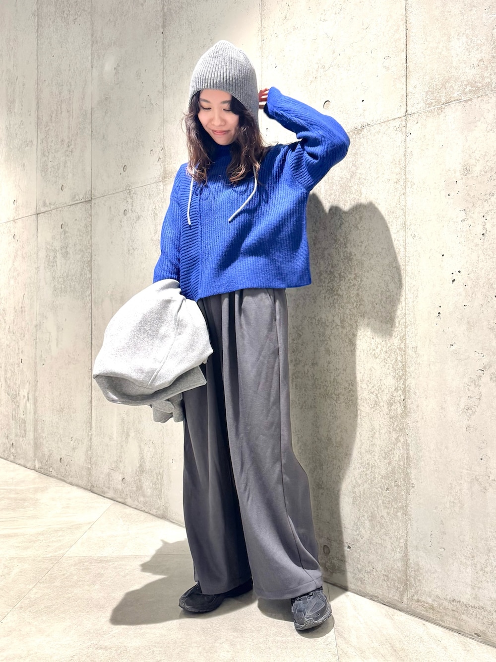 ニットはバランスの取りやすいショート丈なので、シャツレイヤードで着ても可愛いですよ!