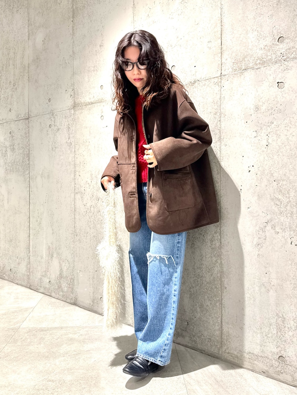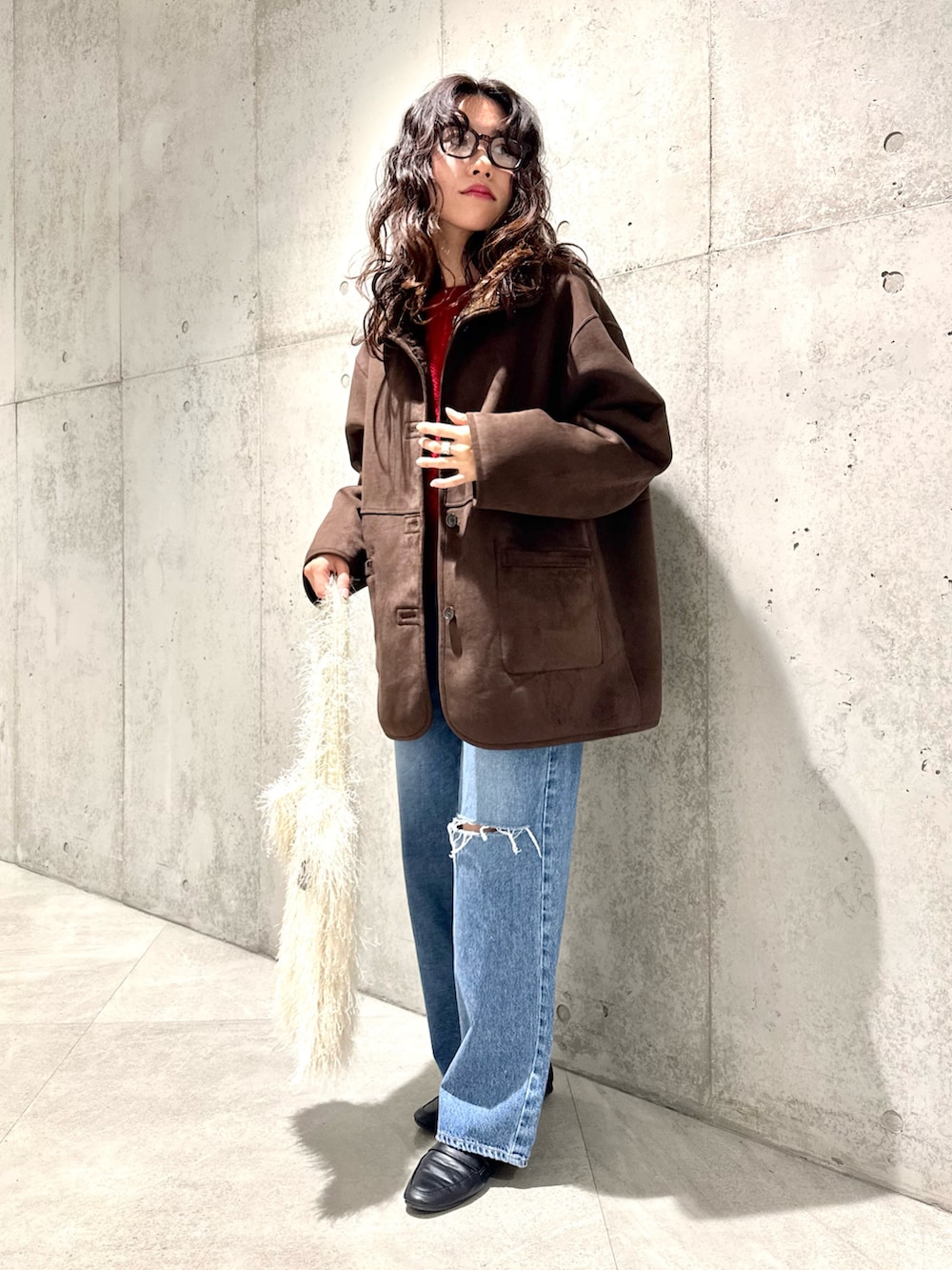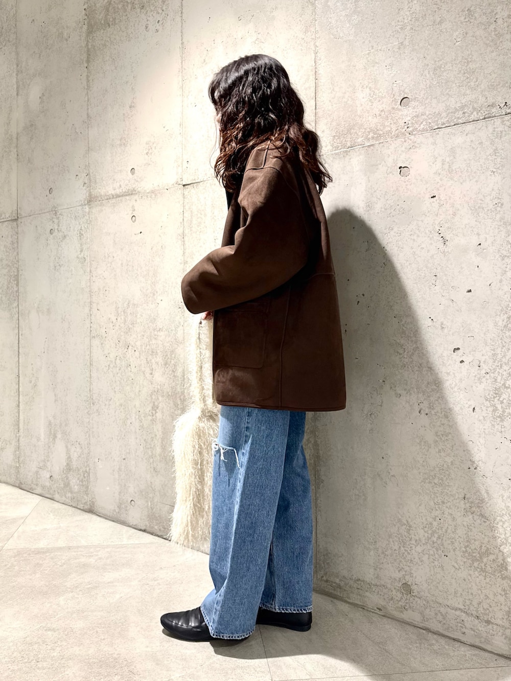 URのリバーシブルムートンコートは、ボア面もブラウンなのが個人的にツボ。