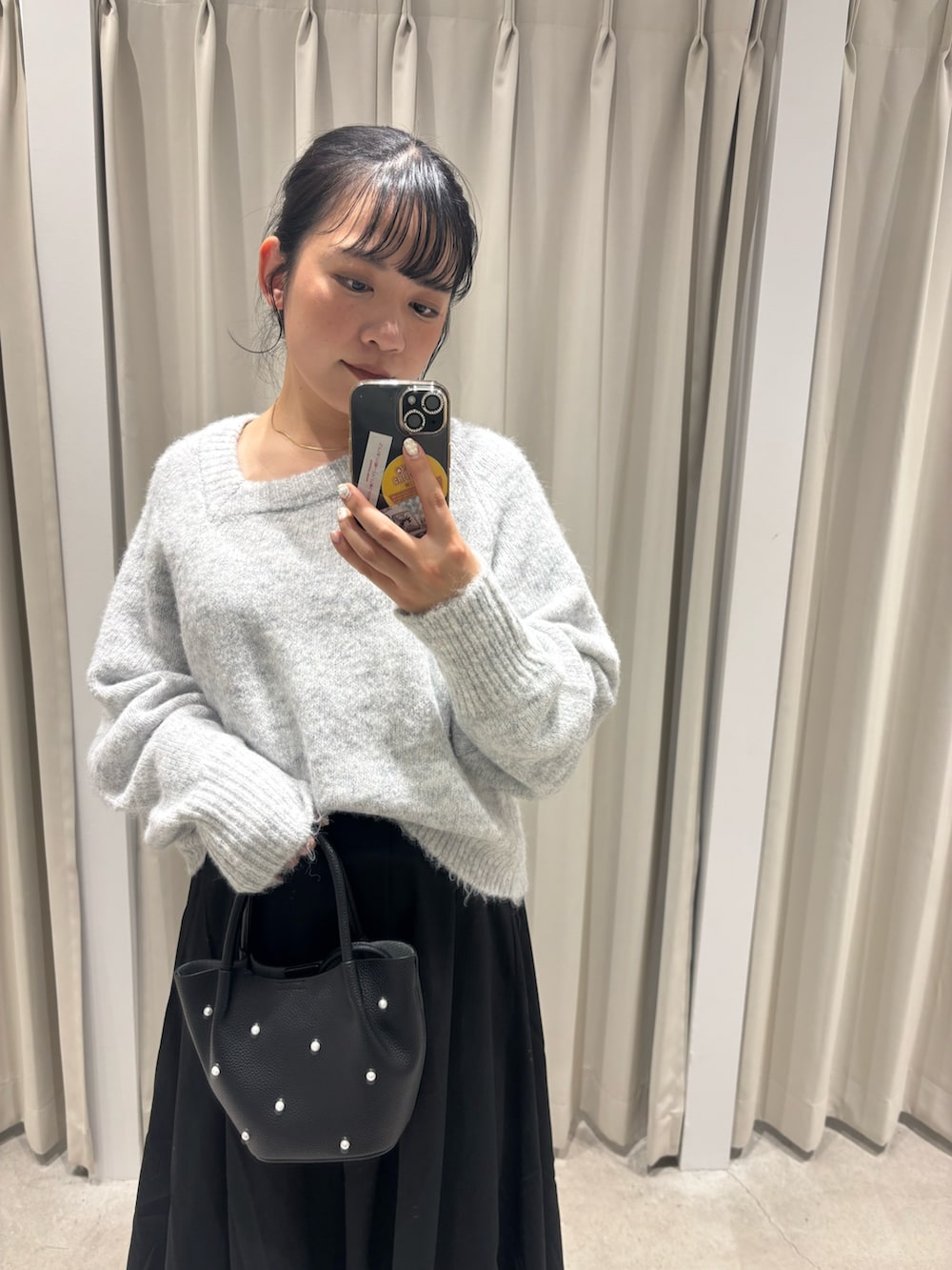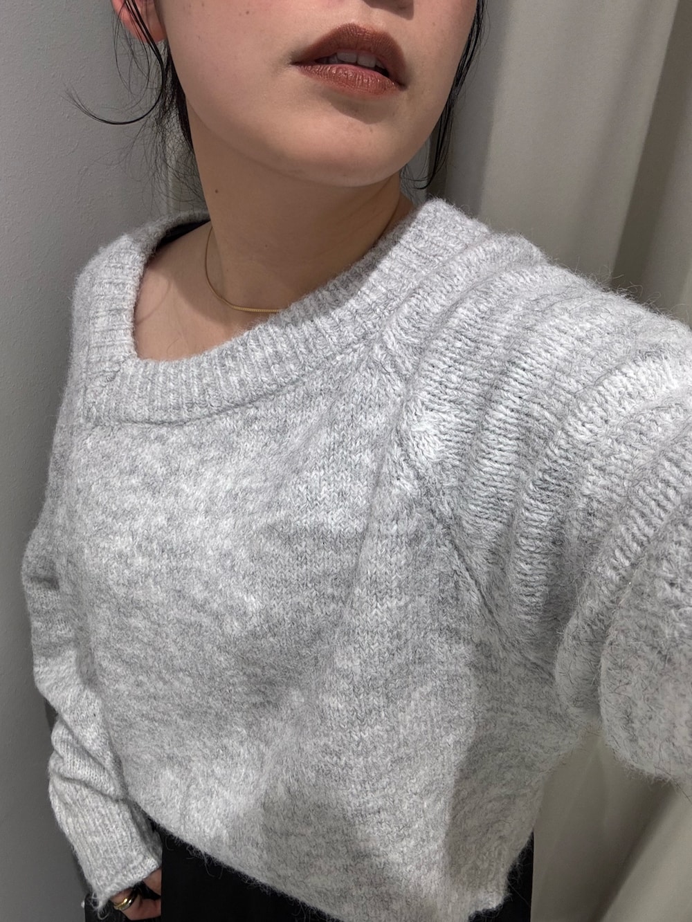 首元がスッキリ綺麗に見えるこちらのニットはアシンメトリーなデザインでさり気なく女性らしい印象を与えてくれます◎