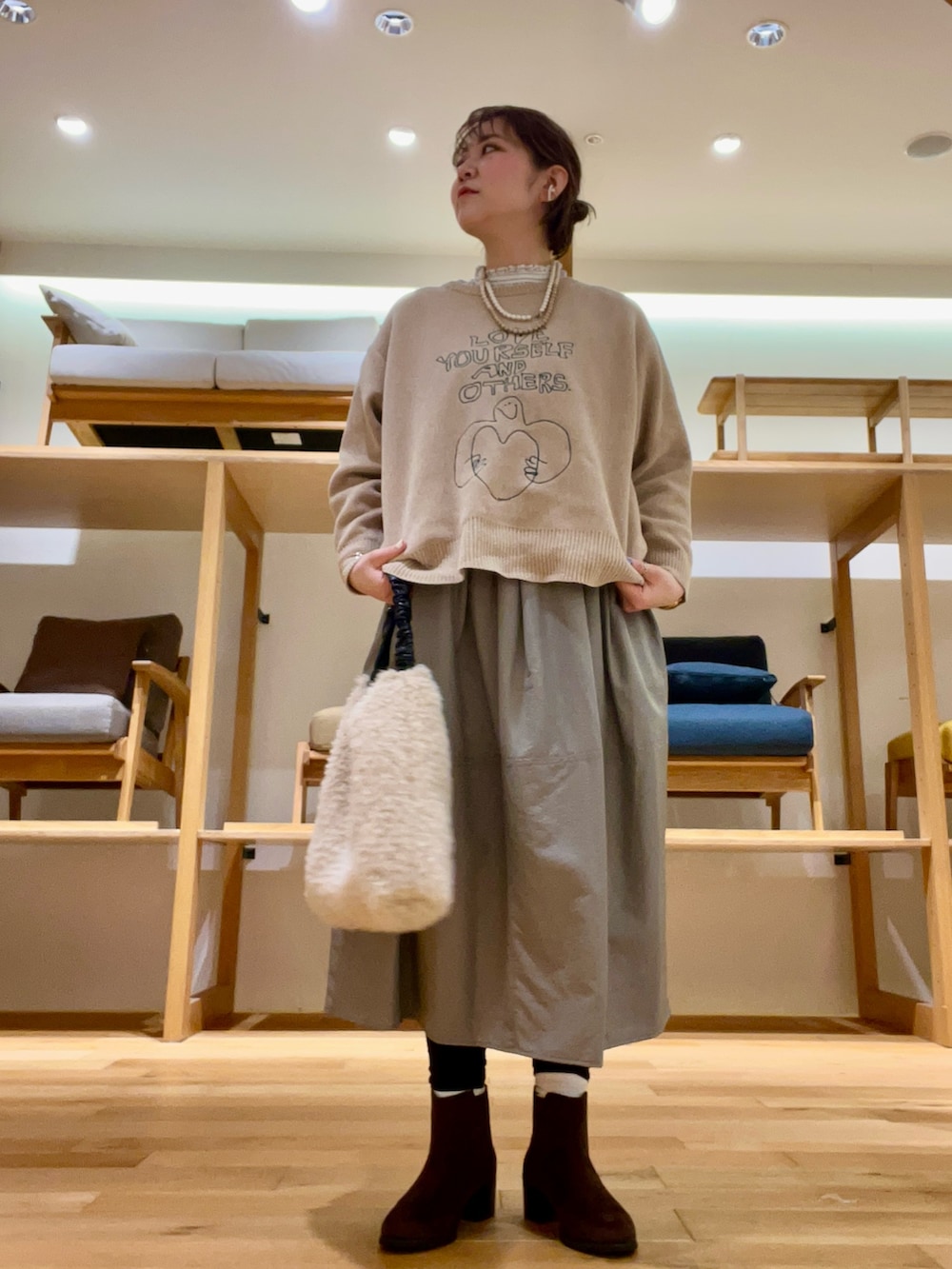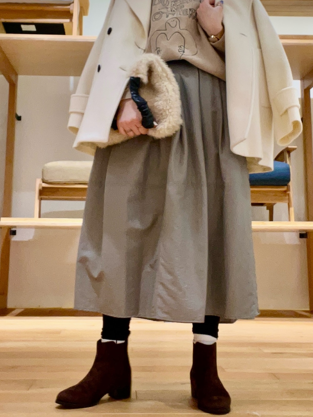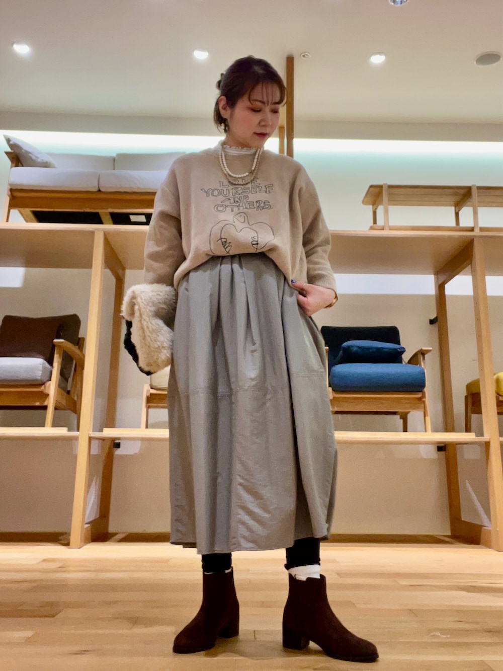 ボリュームギャザースカートと合わせてレディカジュアルスタイルで合わせました‼︎