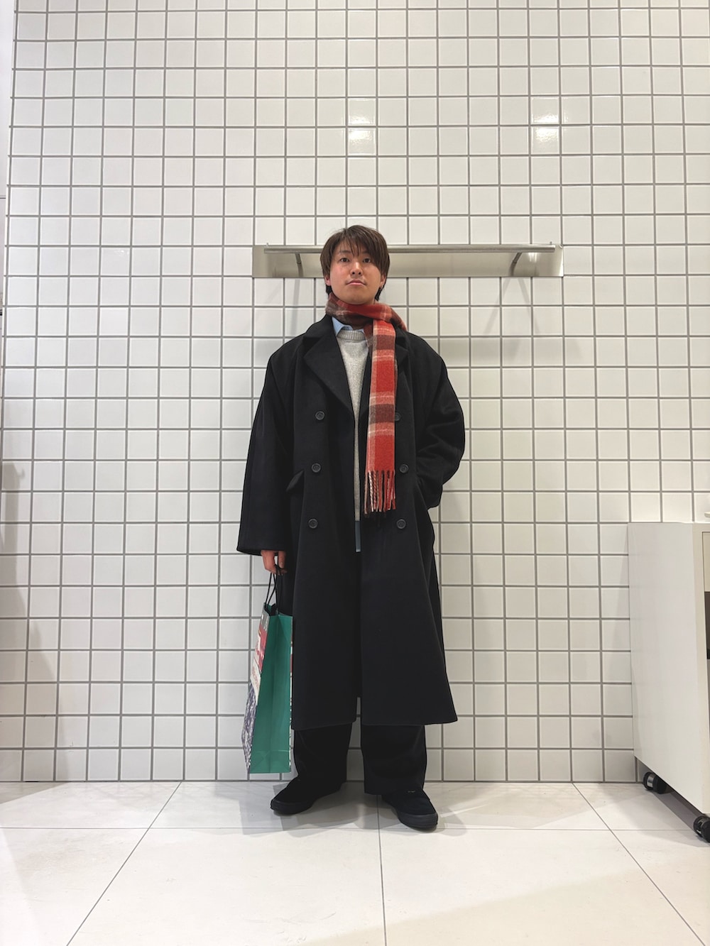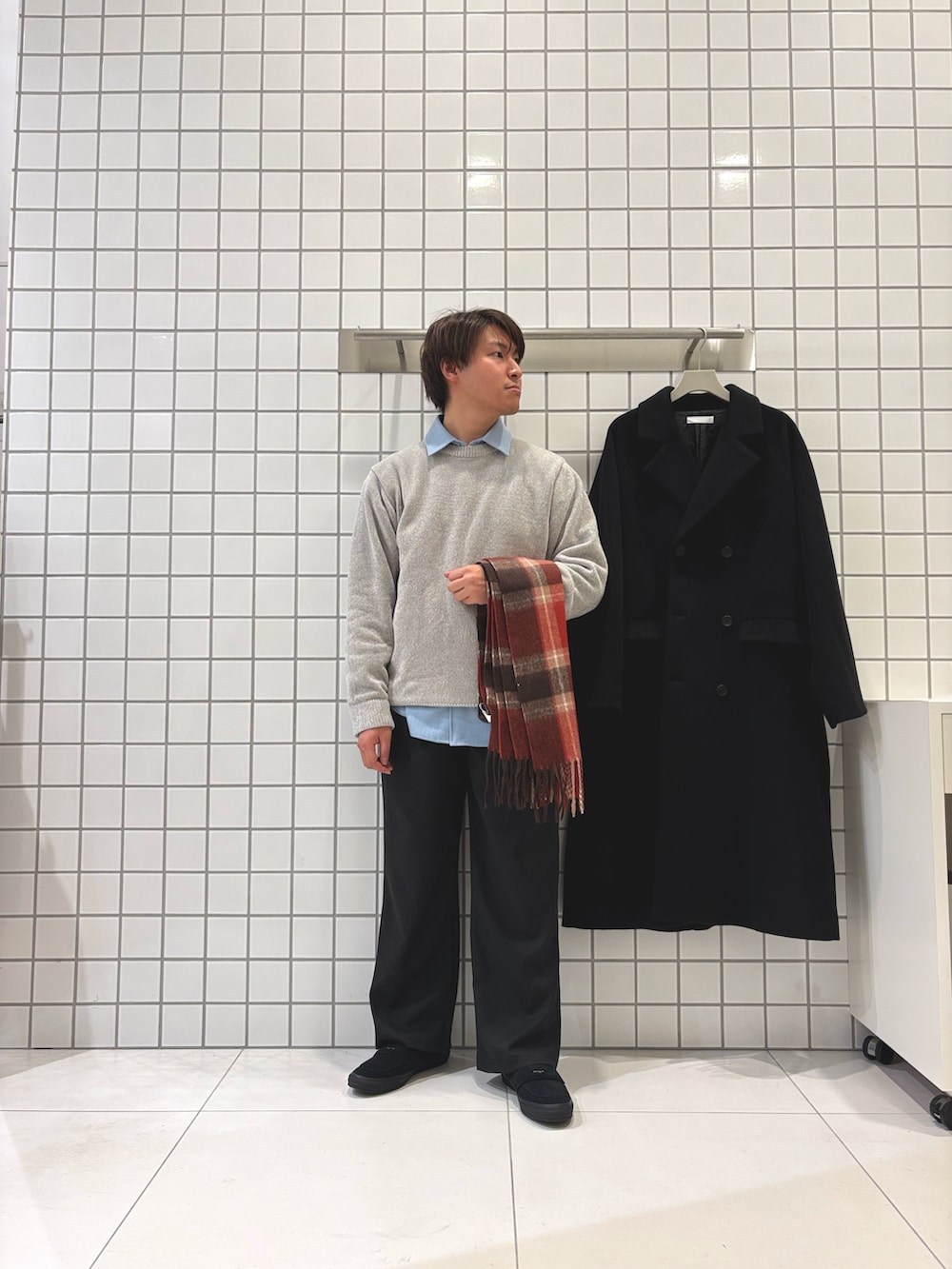 マフラーを赤チェックで合わせて、クリスマスのお出かけコーデとしてもオススメ!🎄