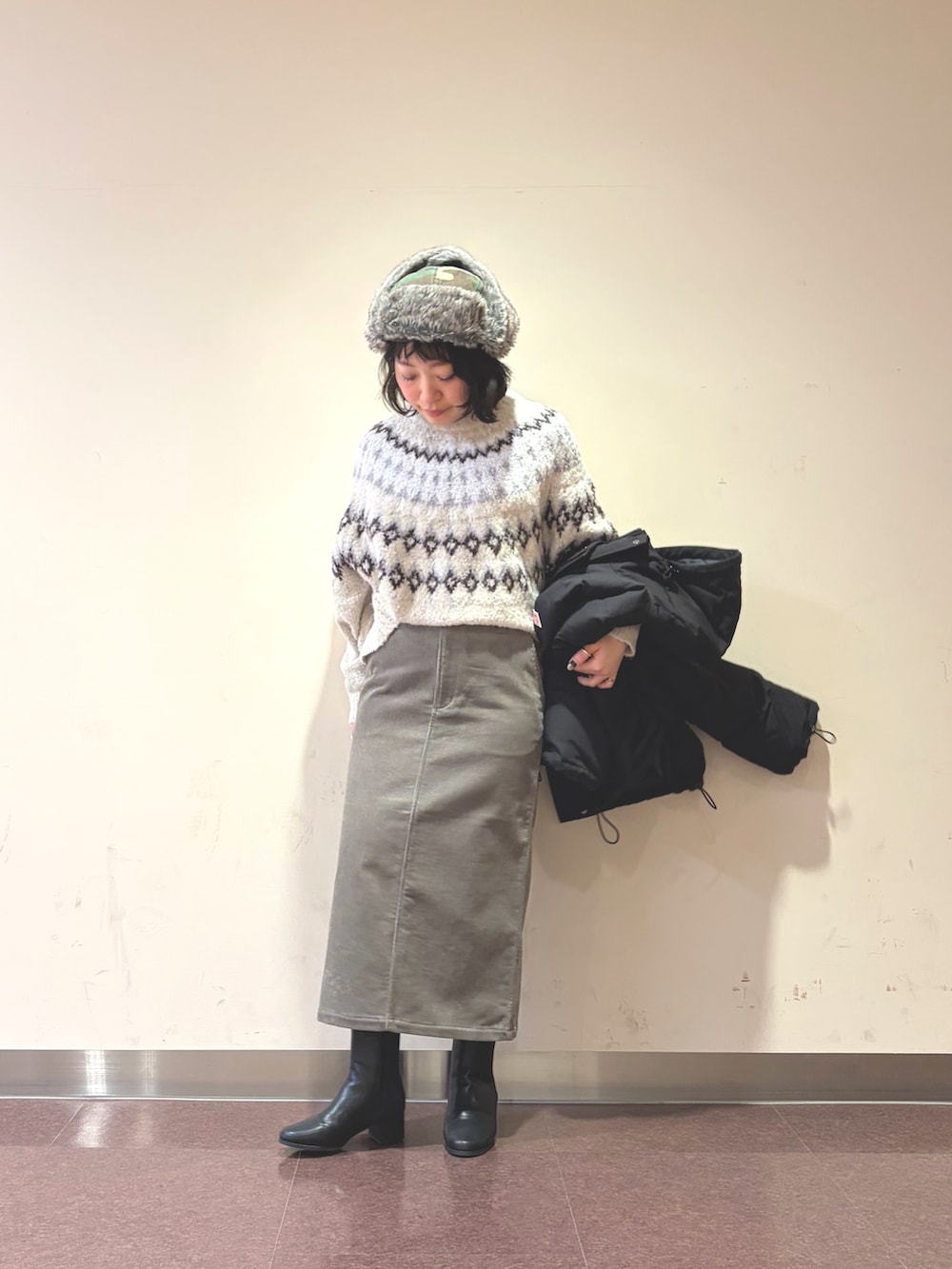 タイトスカートは、ラインがキレイなのでカジュアルもキレイ目もどちらにも使えます◎コーデュロイでほっこりと。季節感バッチリです♪