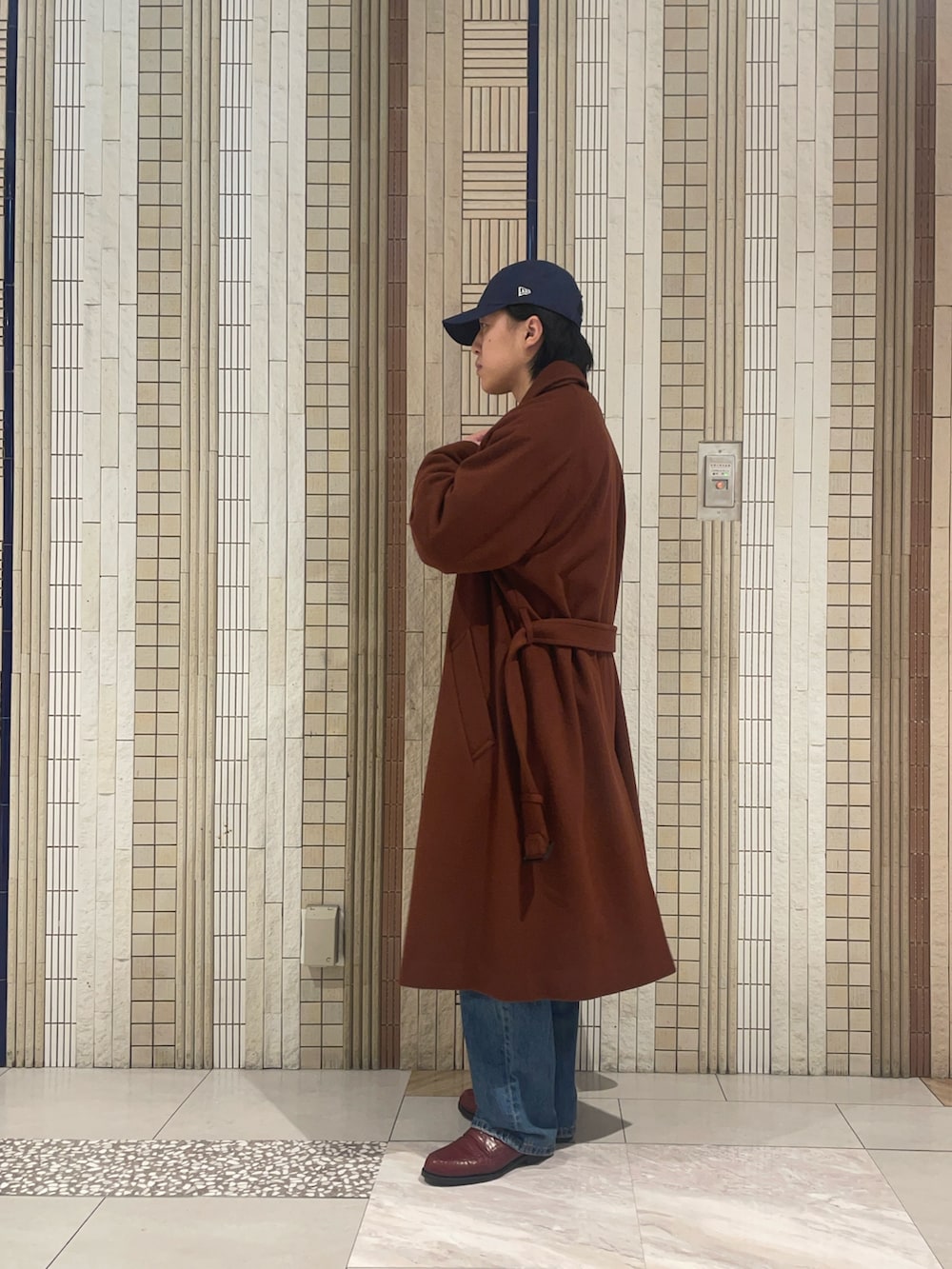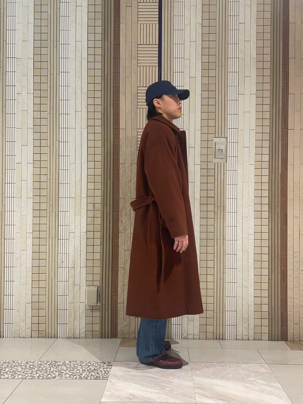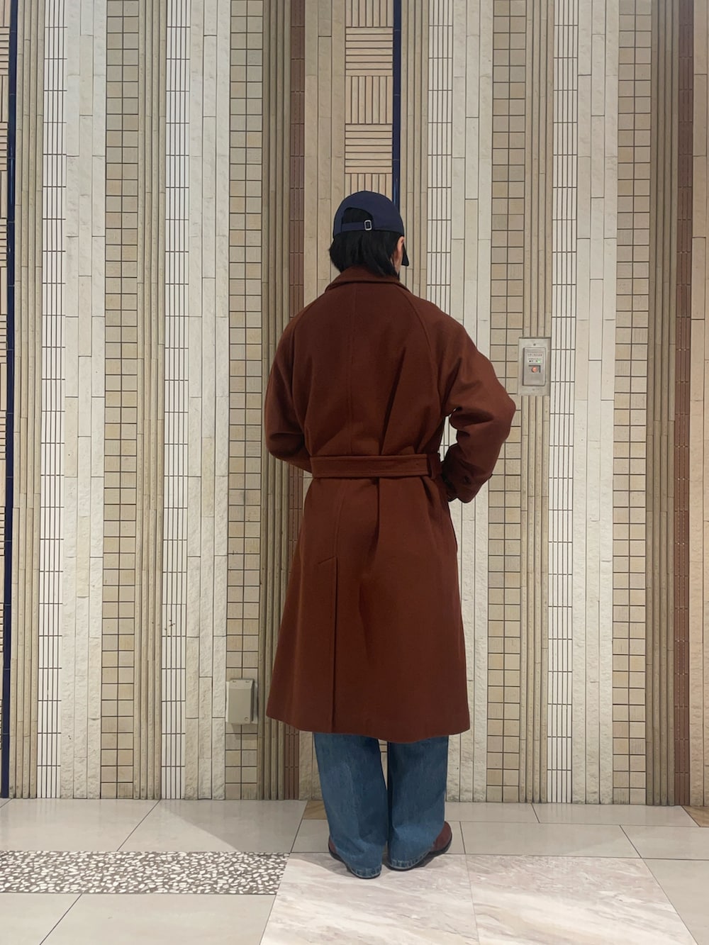 さて、その日を最高にさせたい私がお客様にオススメしたコートがこちら。良い雰囲気です。スラットした丈の長さとベルテッドの雰囲気でもう女性は誰かのモノになってしまうのではないかと気が気でないはず。どうかあの後のイルミネーションデートで成功したことを切に願います。
