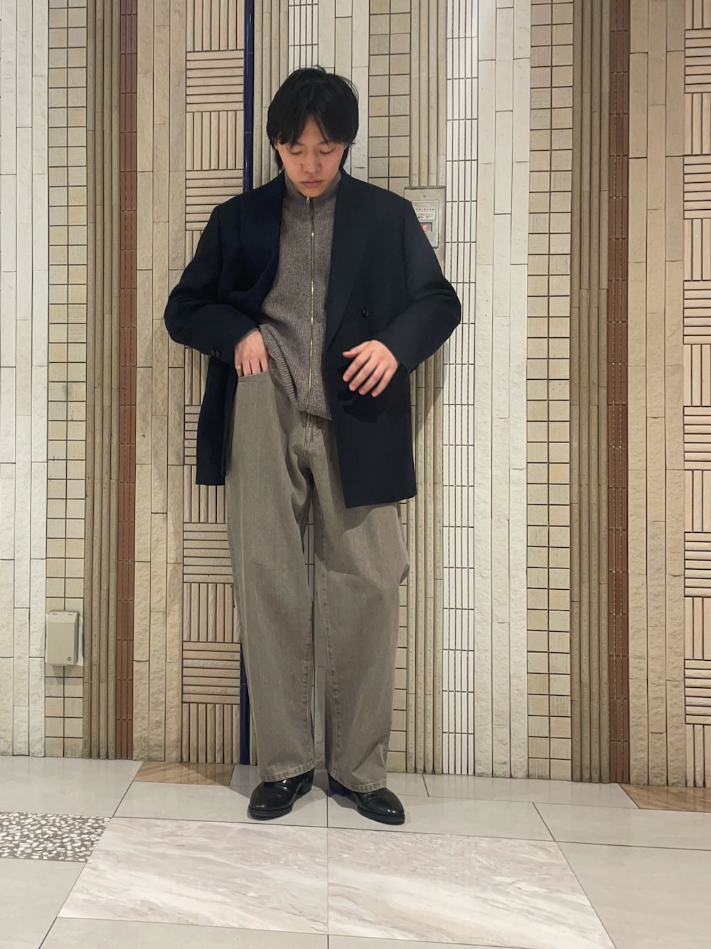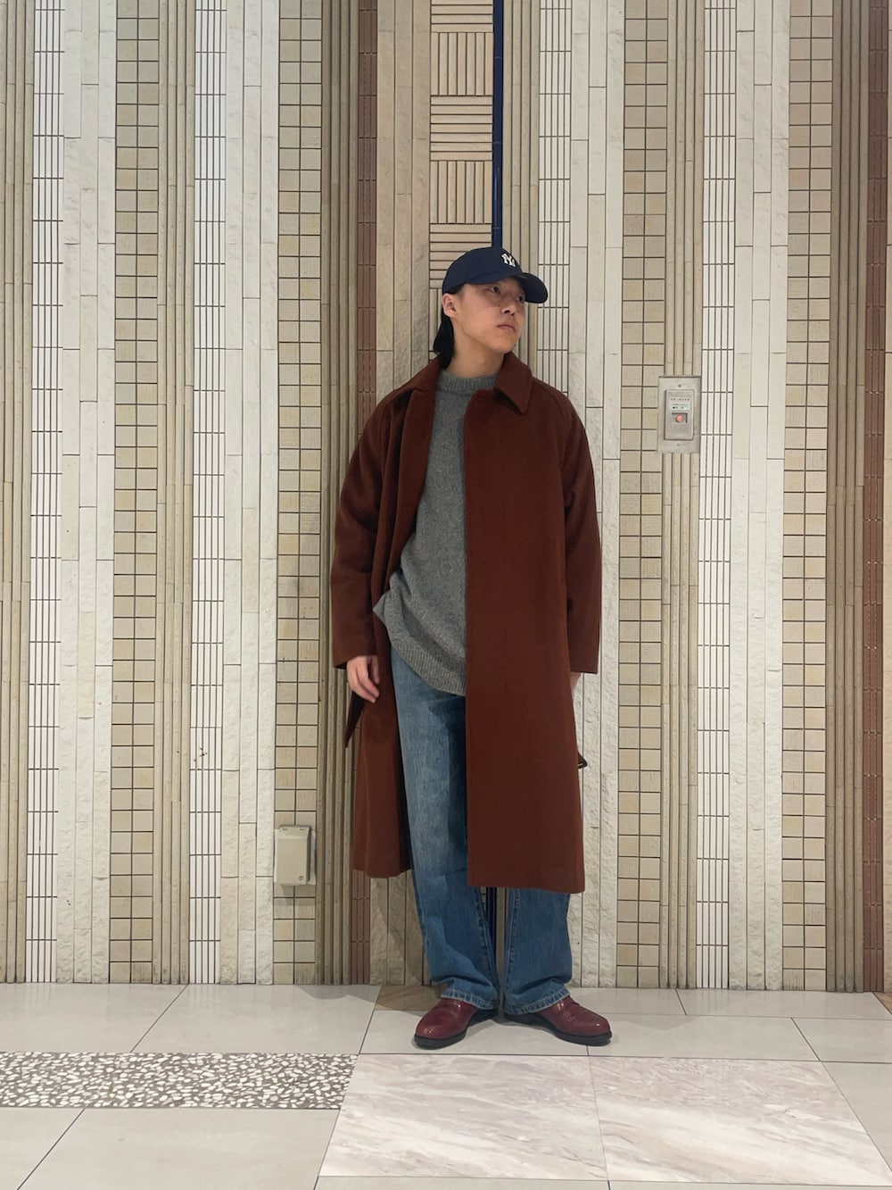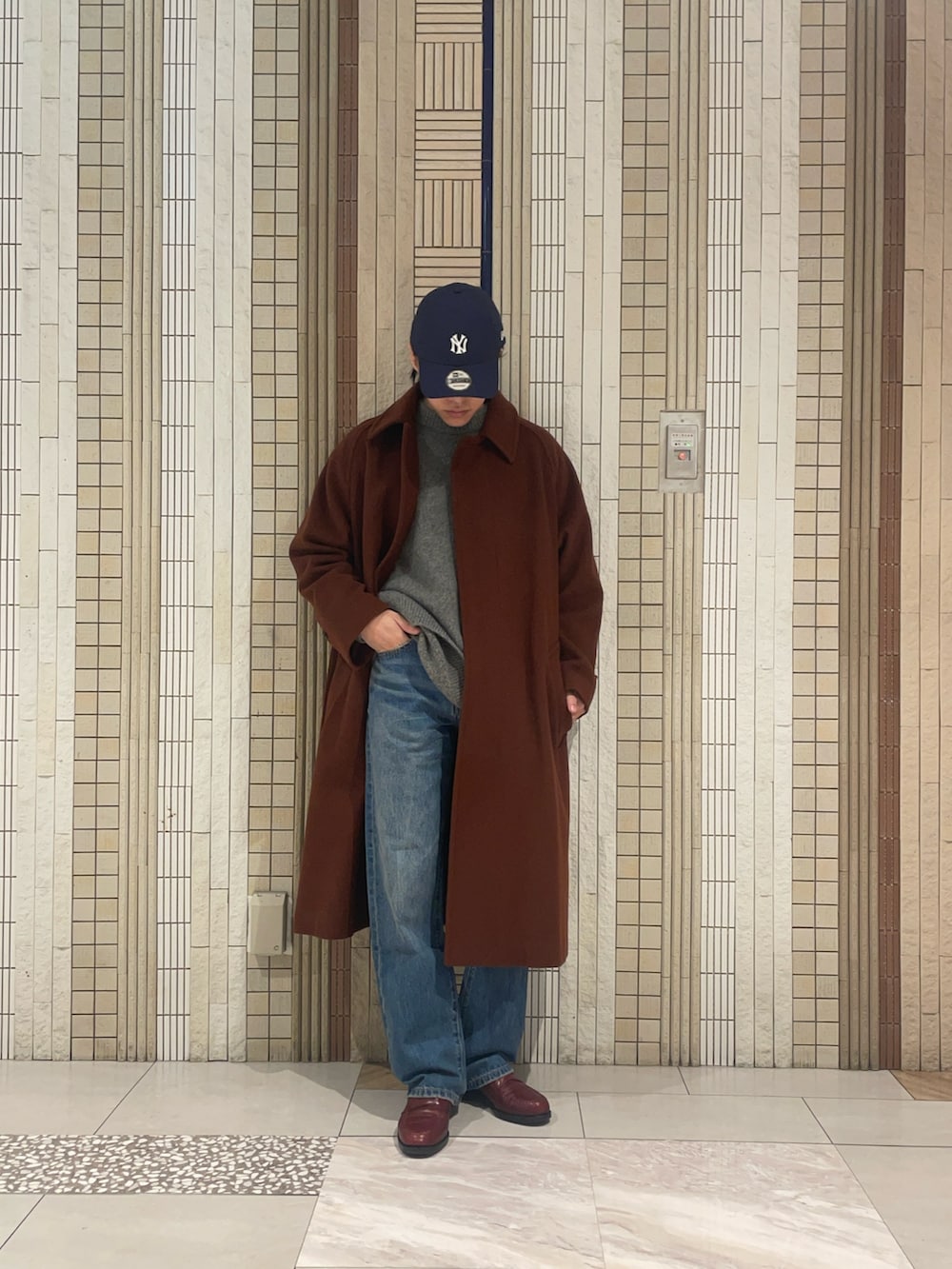 さて、その日を最高にさせたい私がお客様にオススメしたコートがこちら。良い雰囲気です。スラットした丈の長さとベルテッドの雰囲気でもう女性は誰かのモノになってしまうのではないかと気が気でないはず。どうかあの後のイルミネーションデートで成功したことを切に願います。