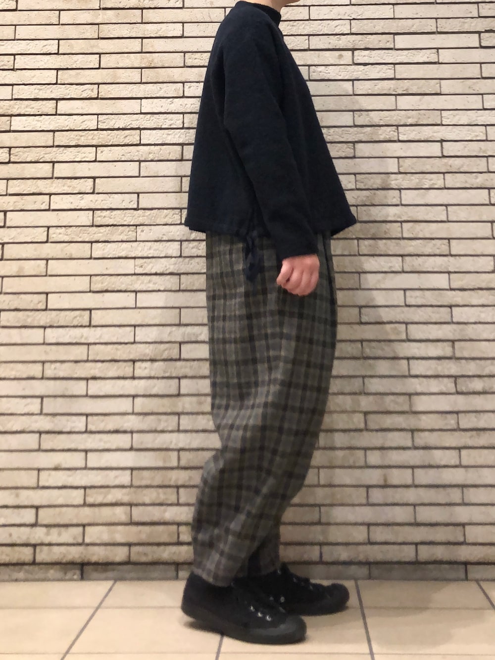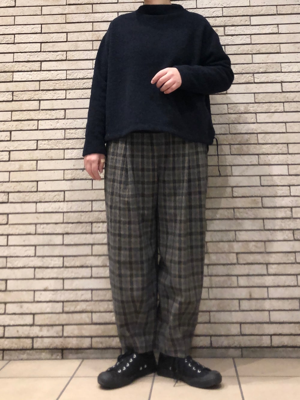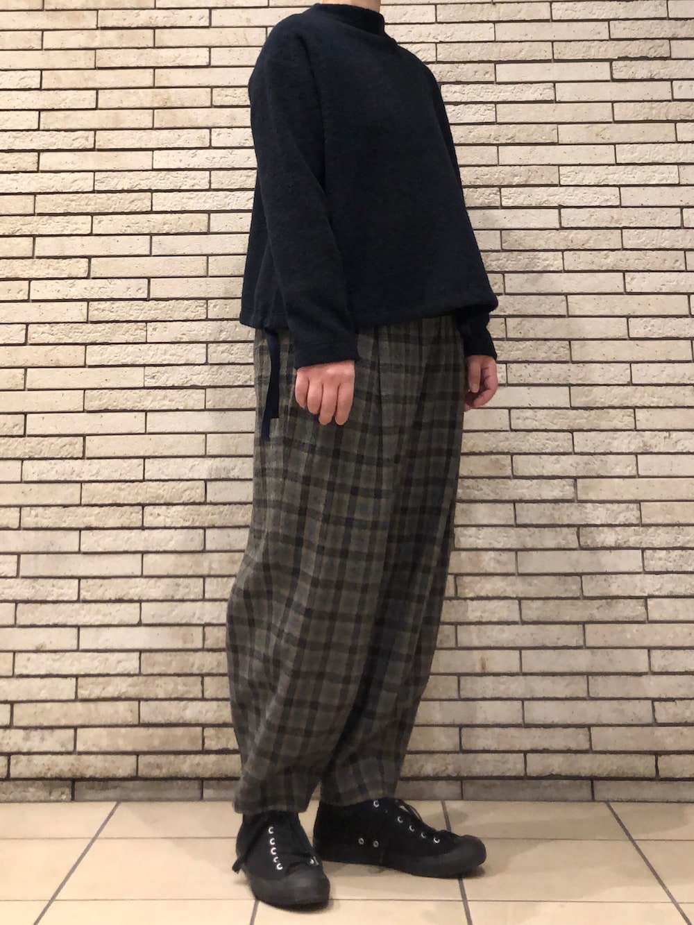 パンツはチェック柄がかわいい1着です。シンプルなスタイリングにも存在感が出ます◎