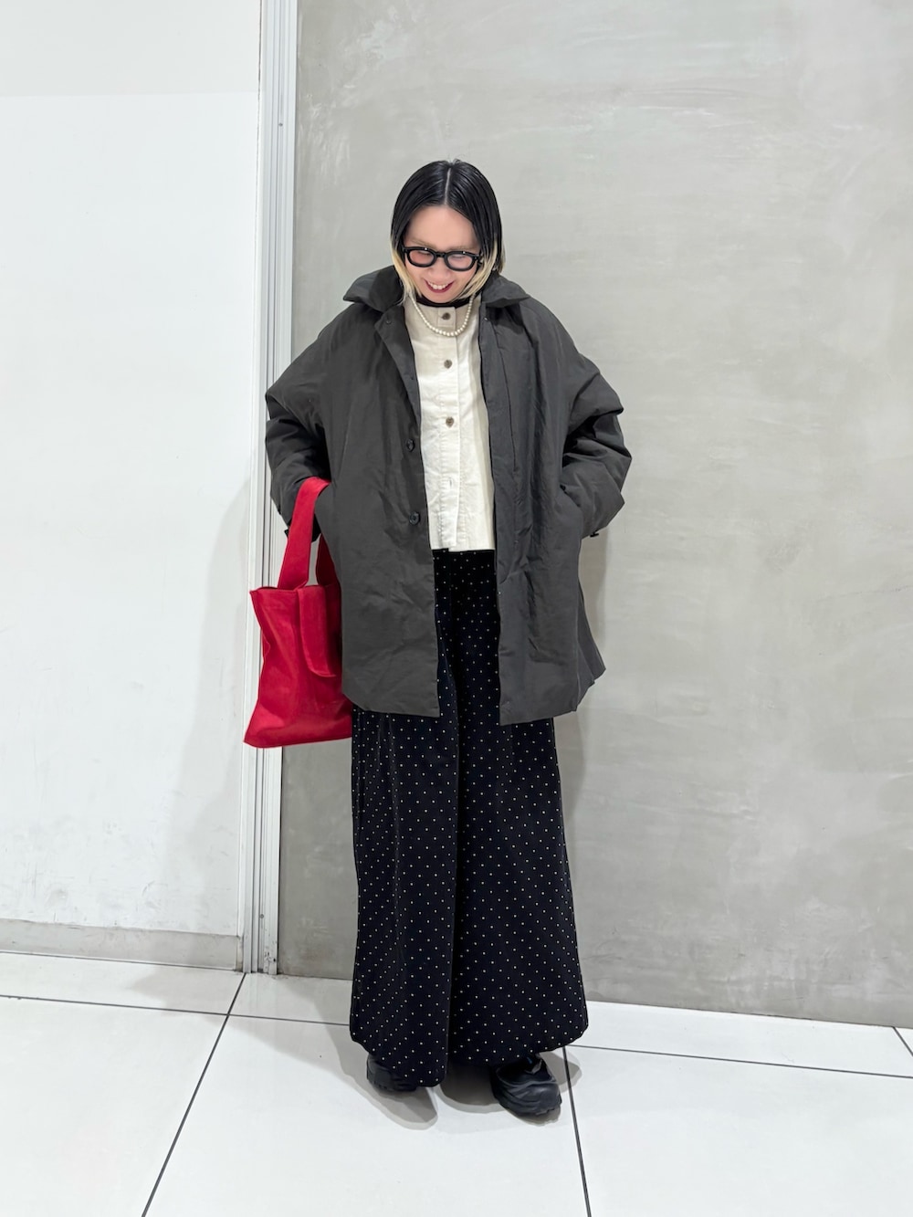 また、スタッフ中村も同じシリーズのロングコートでスタイリングしておりますのでご覧下さいませ🫶