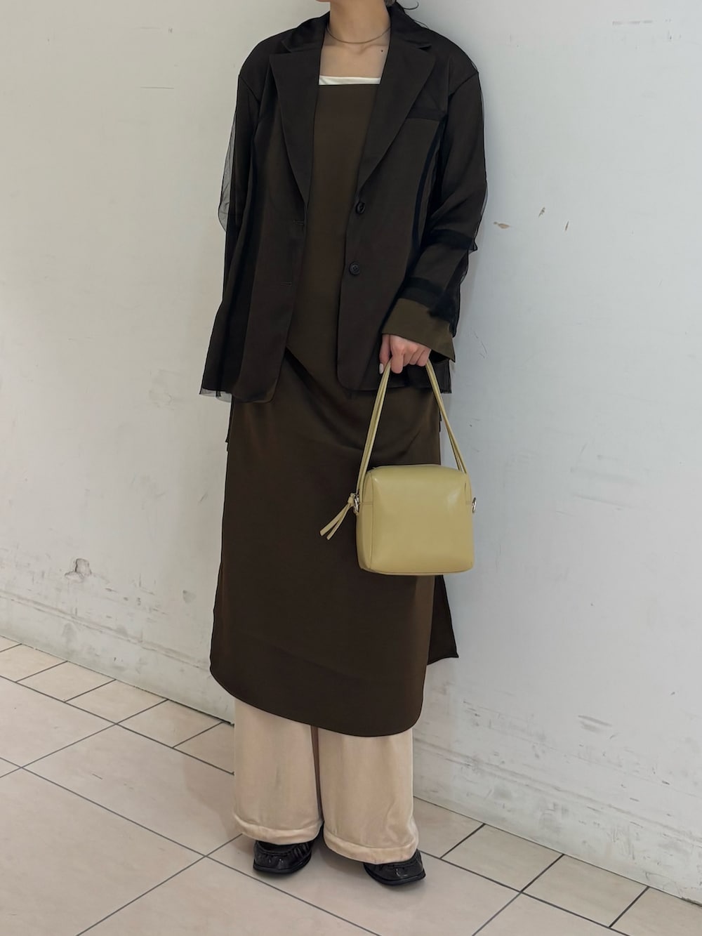 高身長の私にはサテンキャミワンピースの丈が少し足りなかったのでベロアカーゴパンツとレイヤードしました!