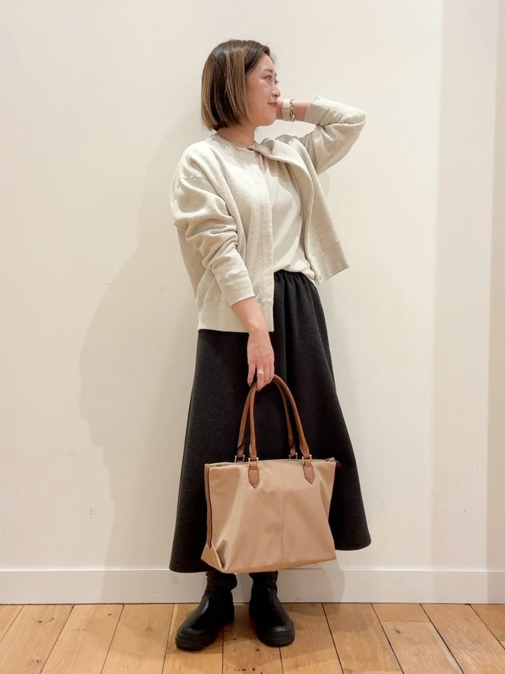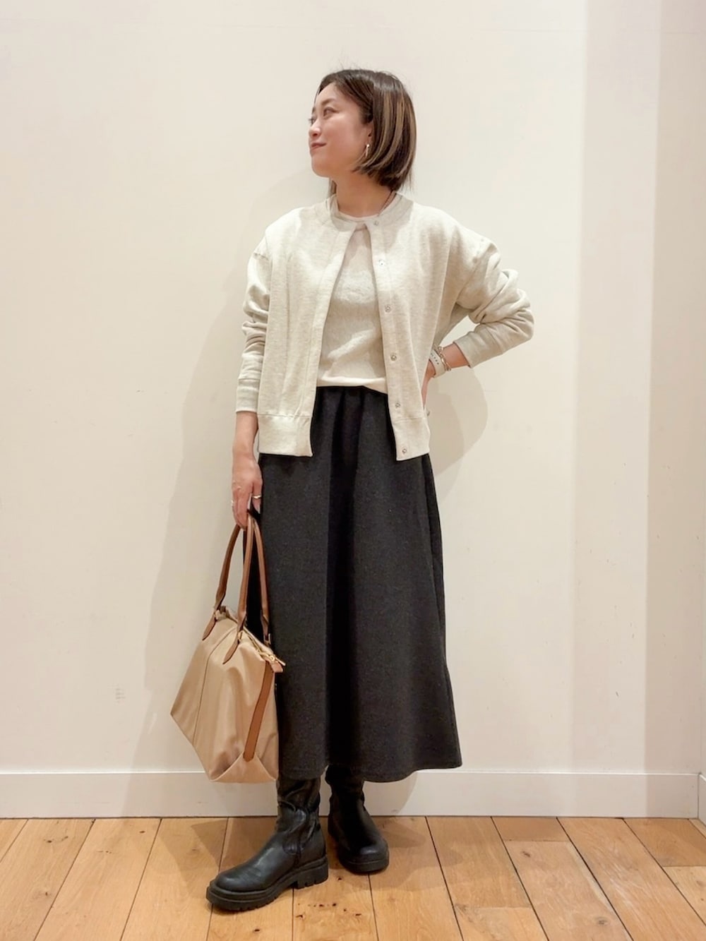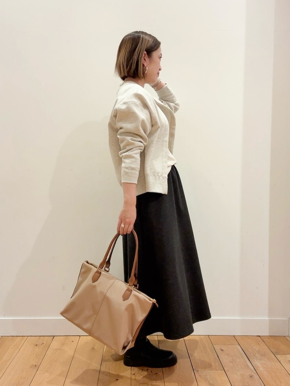 少し厚手のカットソーなどもレイヤードできますが、腕はそこまで太すぎずボリュームのある袖のアイテムは少し相性が悪いかもしれません。