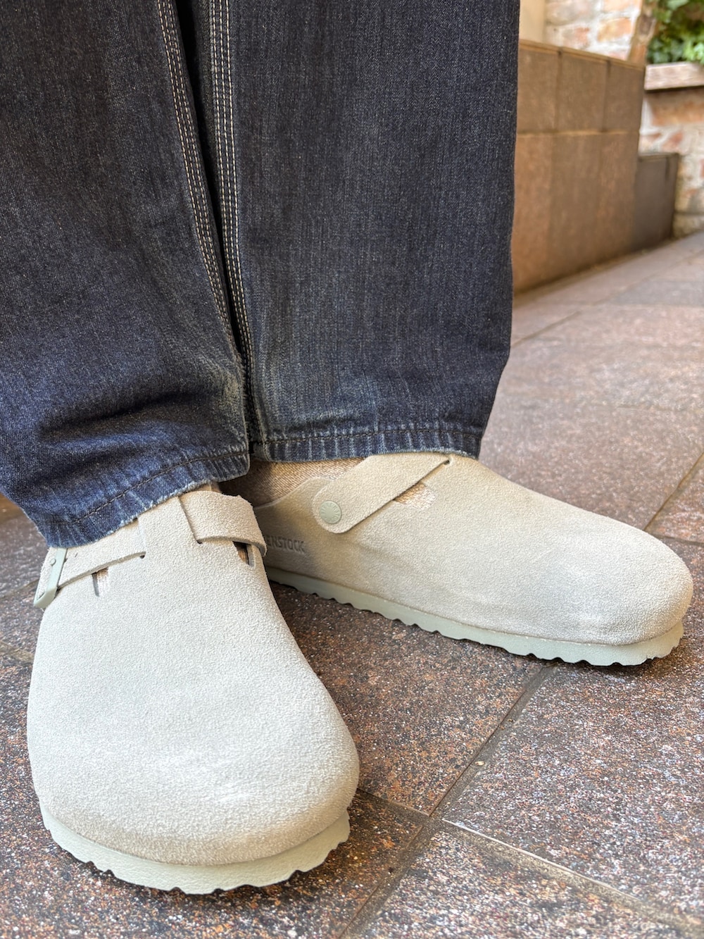 足元には履けば履くほど自分の形に変形していくフットベット、お手入れ次第で個性がでるアッパーは愛着が湧きずるビルケンをチョイス