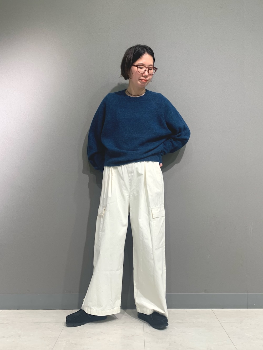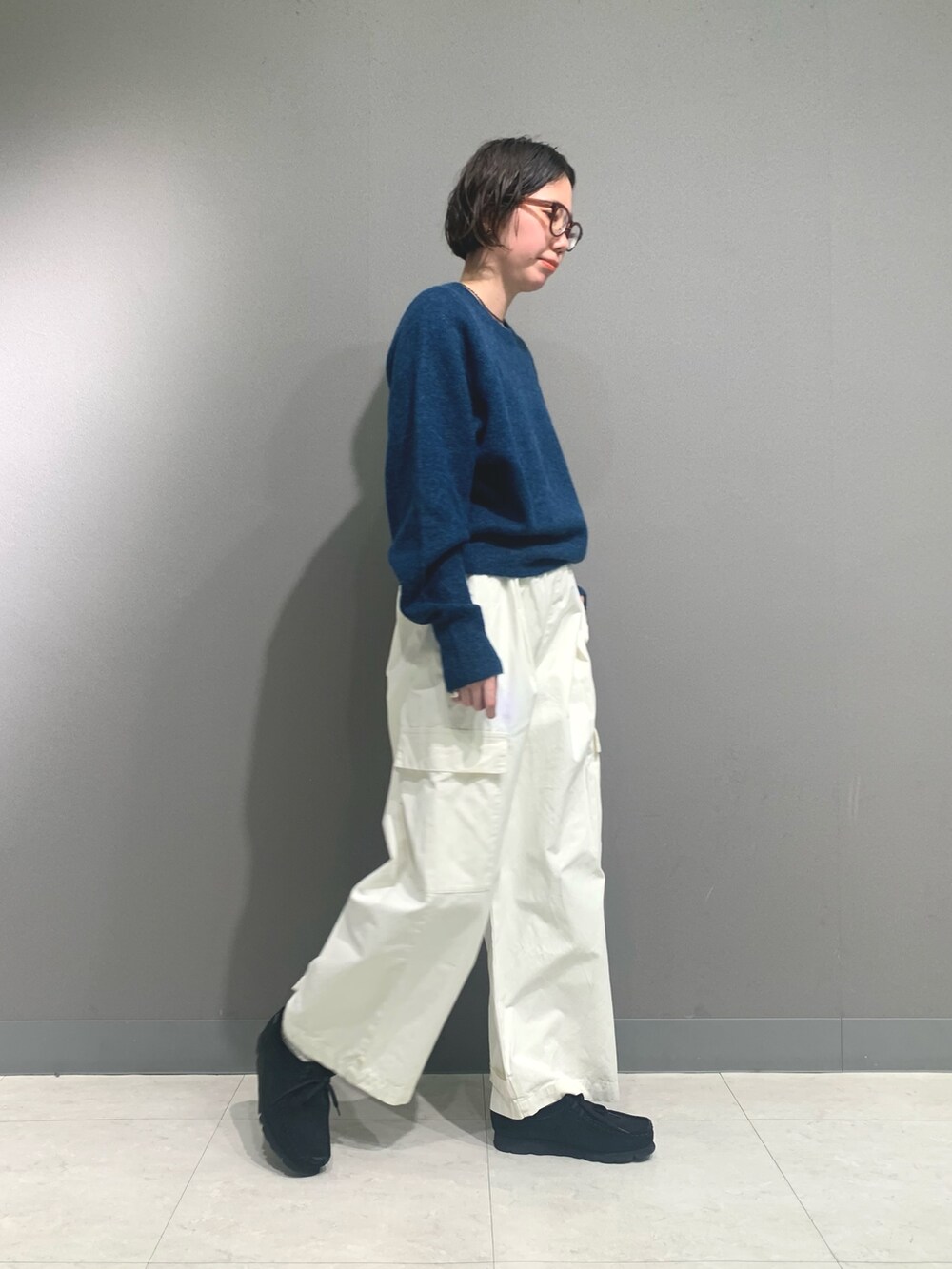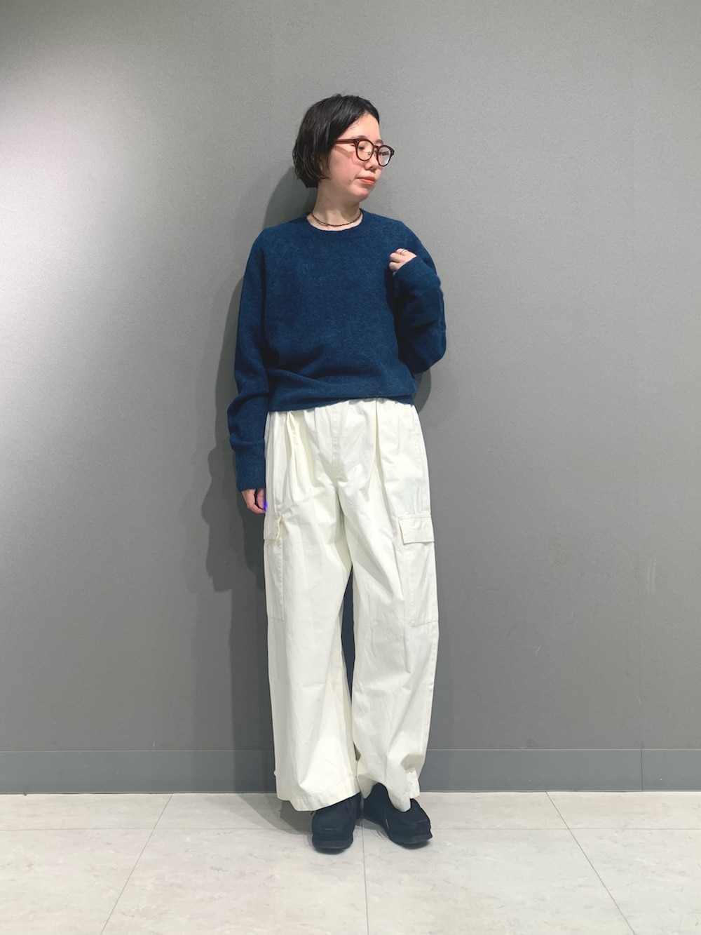 定番のユーティリティパンツ。ホワイトは冬の重たいコーディネートにも抜け感が出て◎コンパクトなトップスともバランスがとりやすいです。
