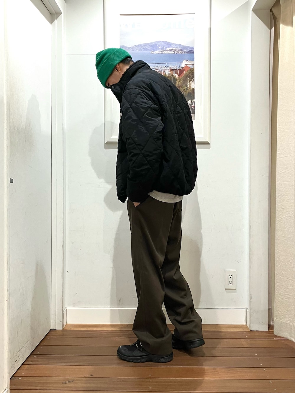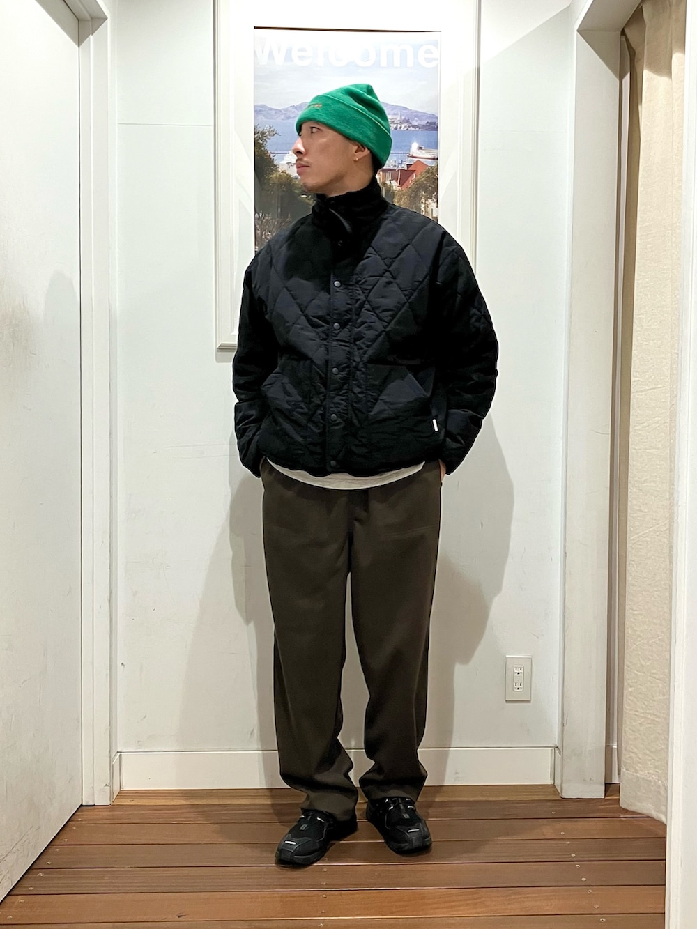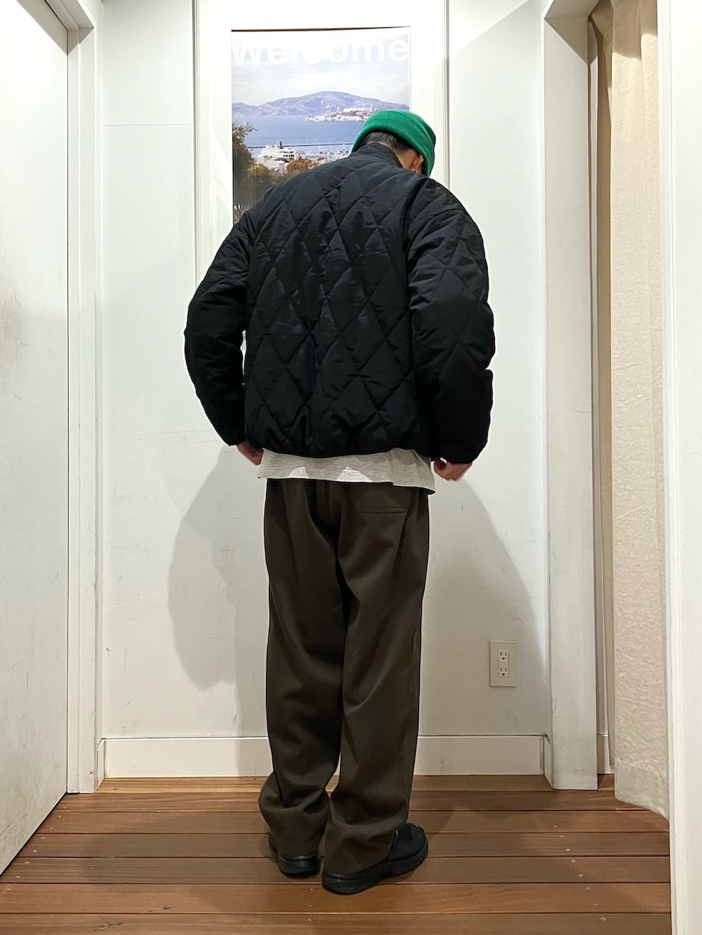 パンツはレングス長めですが、ワンサイズ上げてちょい上げパンで履くとワタリも程よく出てオススメです。
