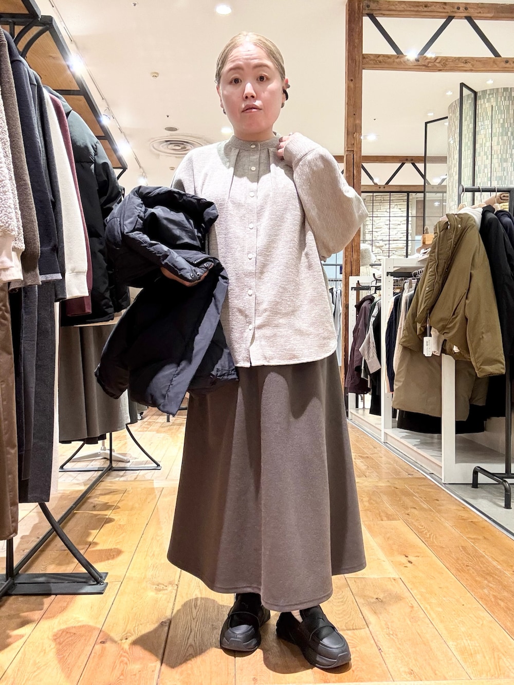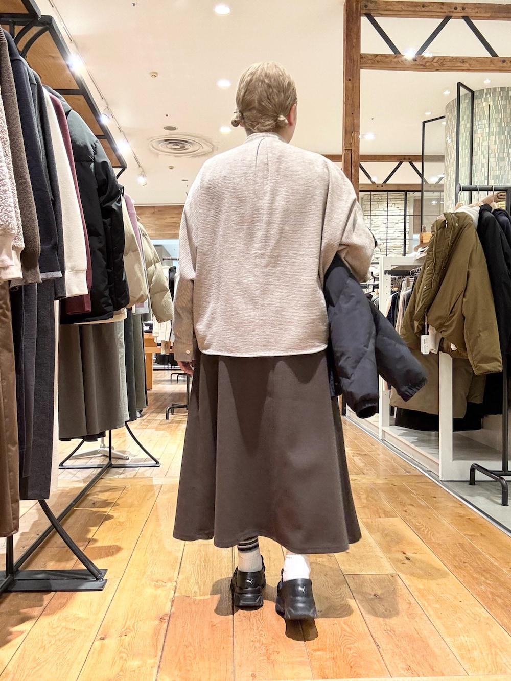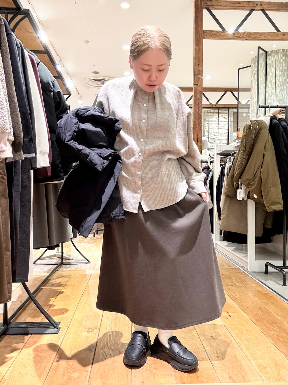 スカートはウールライクなジャージ生地を