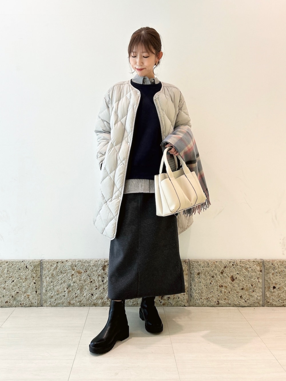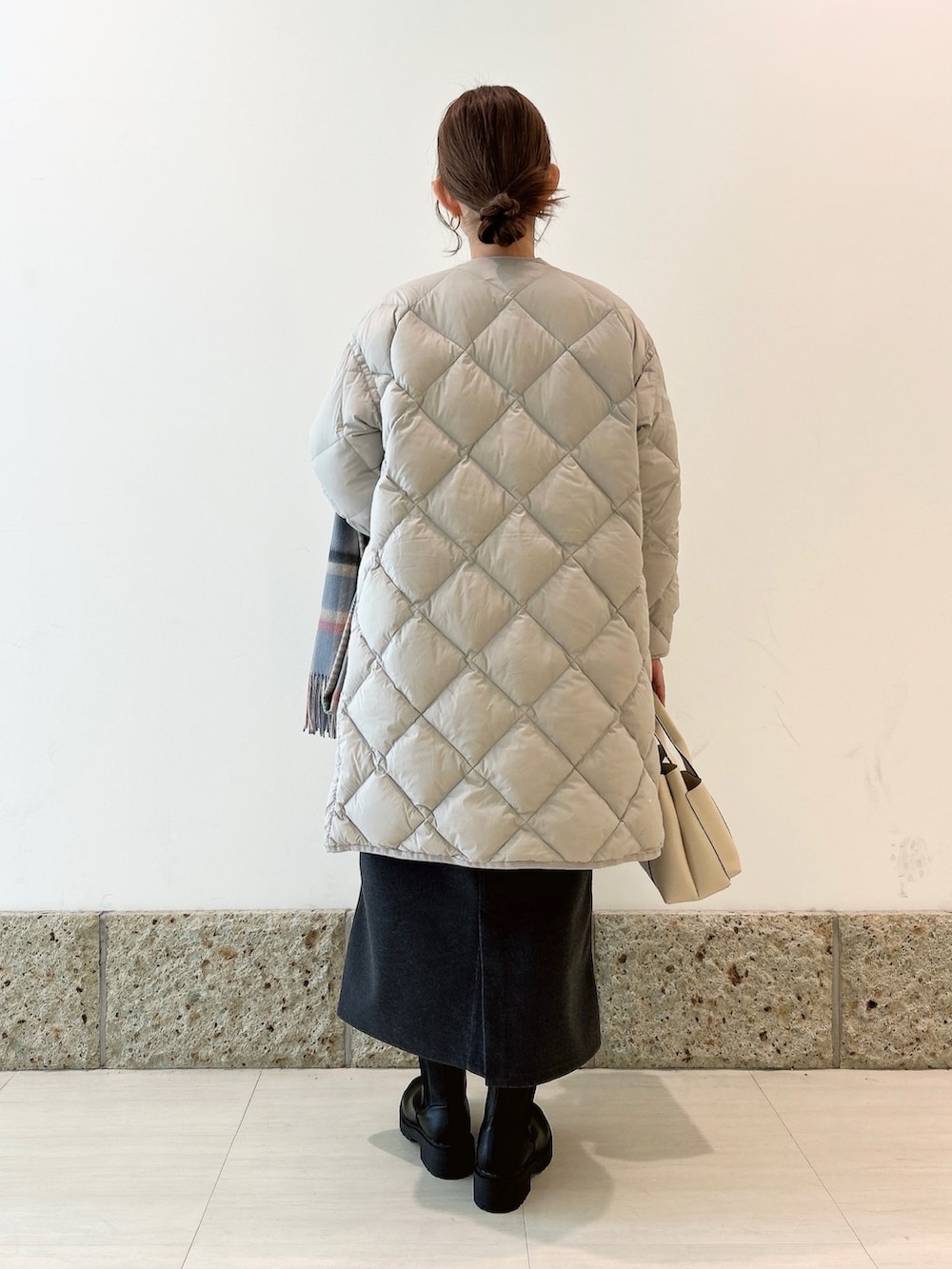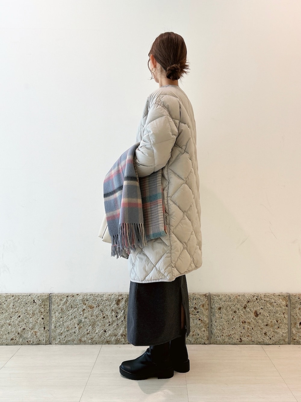 アウターにはロングダウンを。
