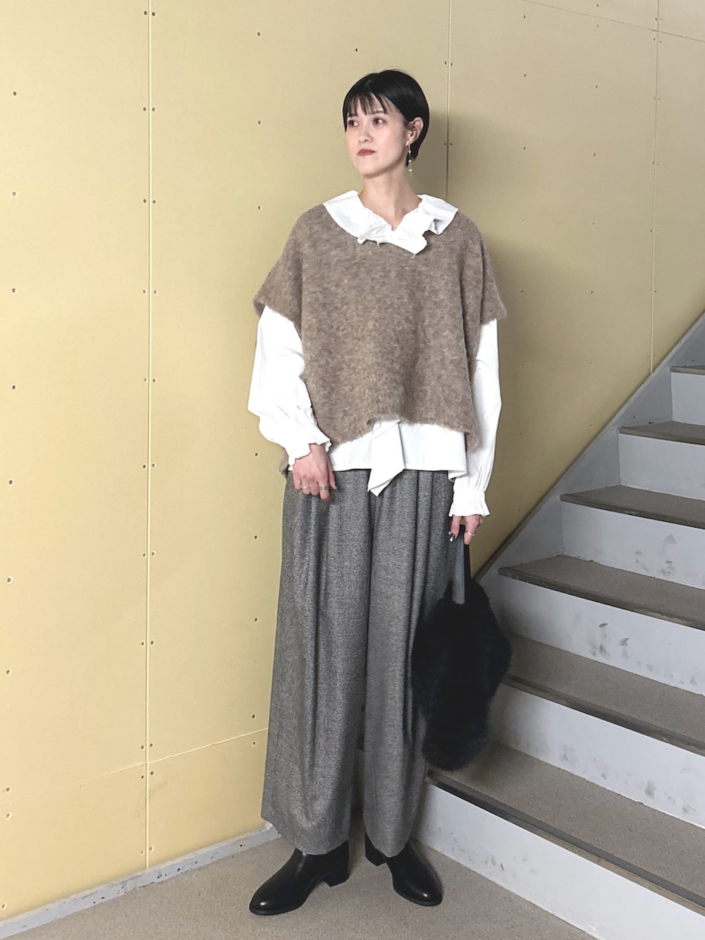 かぐれアルパカワイドニットベスト- 着用カラー: