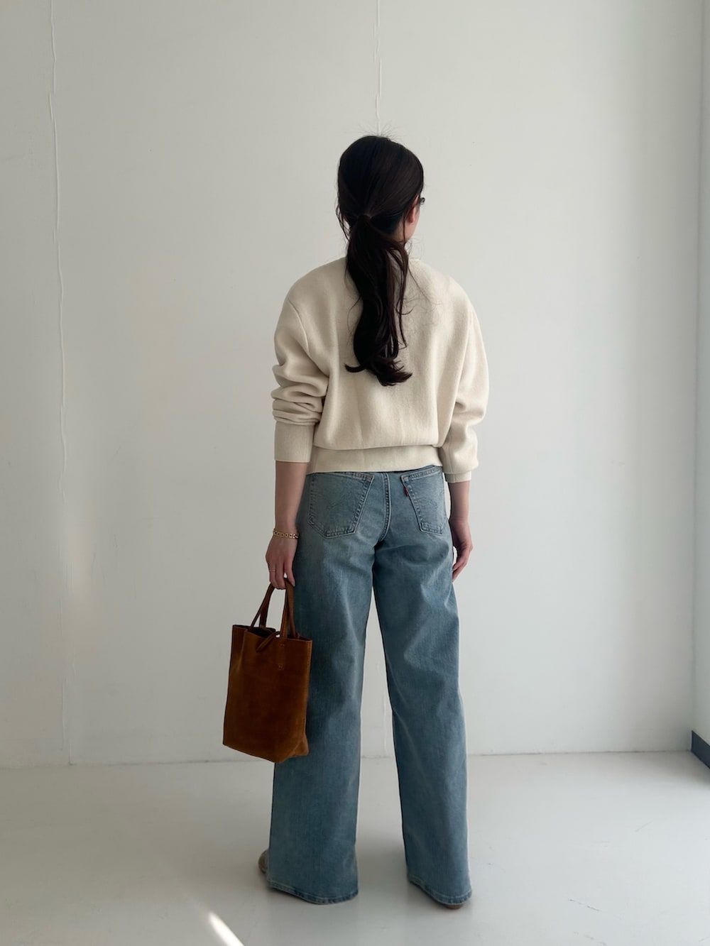 ウエスト部分のリブデザインでウエストがすっきり見えます。ワイドパンツやスカートに合わせてもバランスが良いいです。
