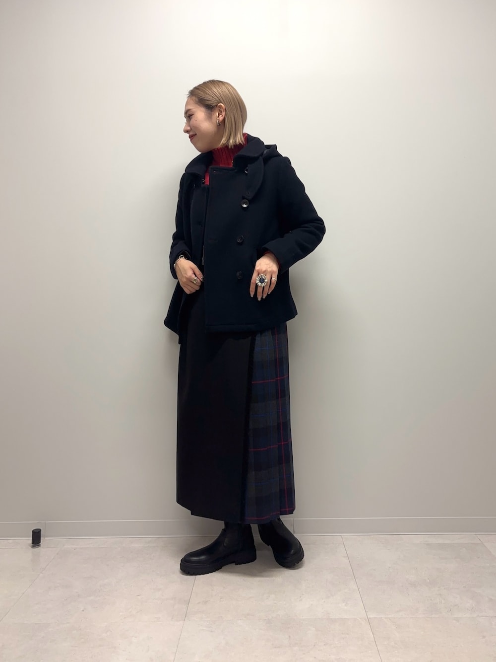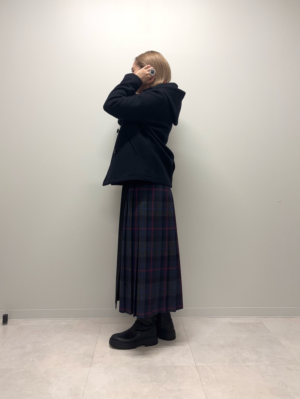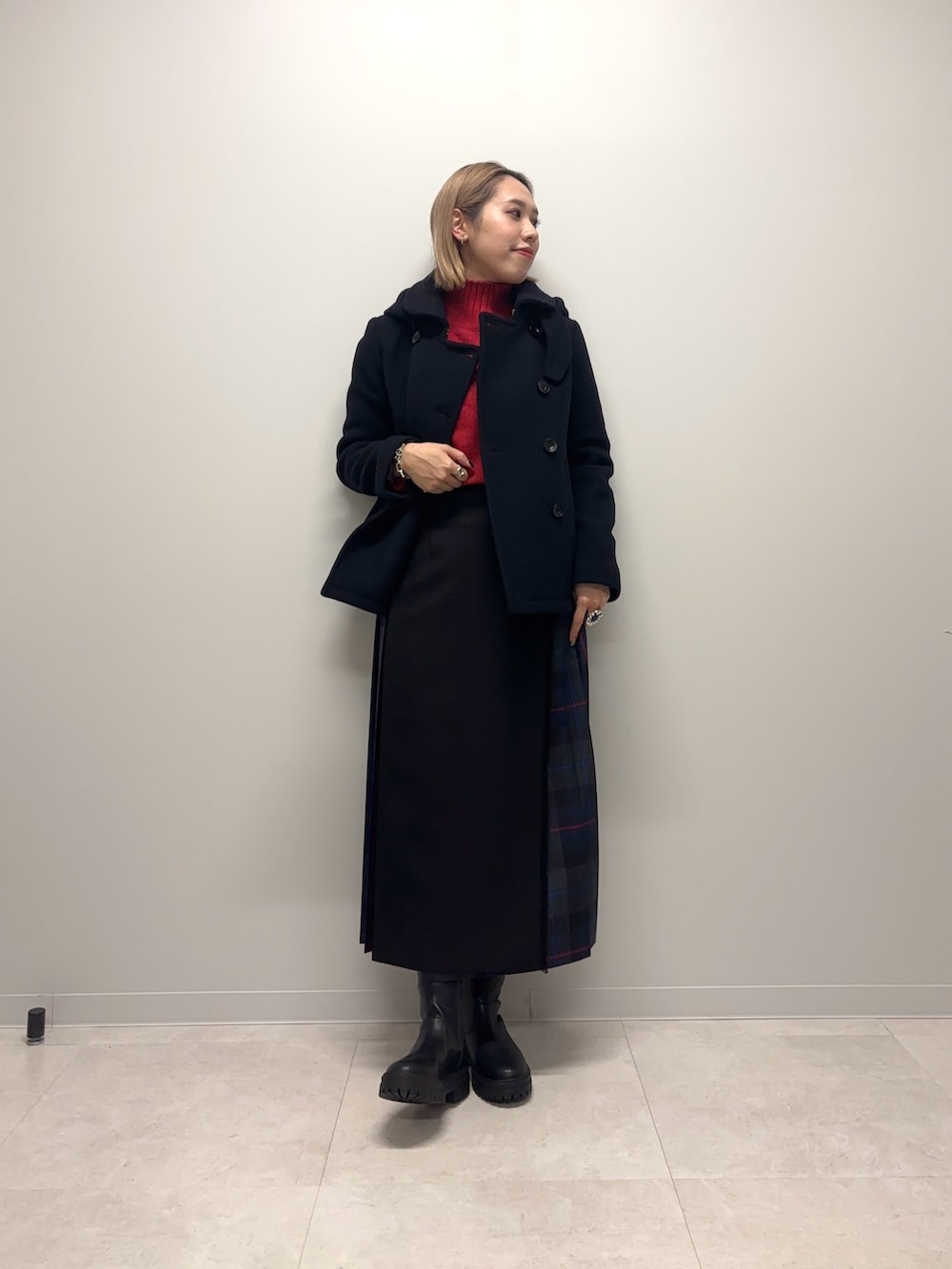 スカートもネイビーで合わせています!