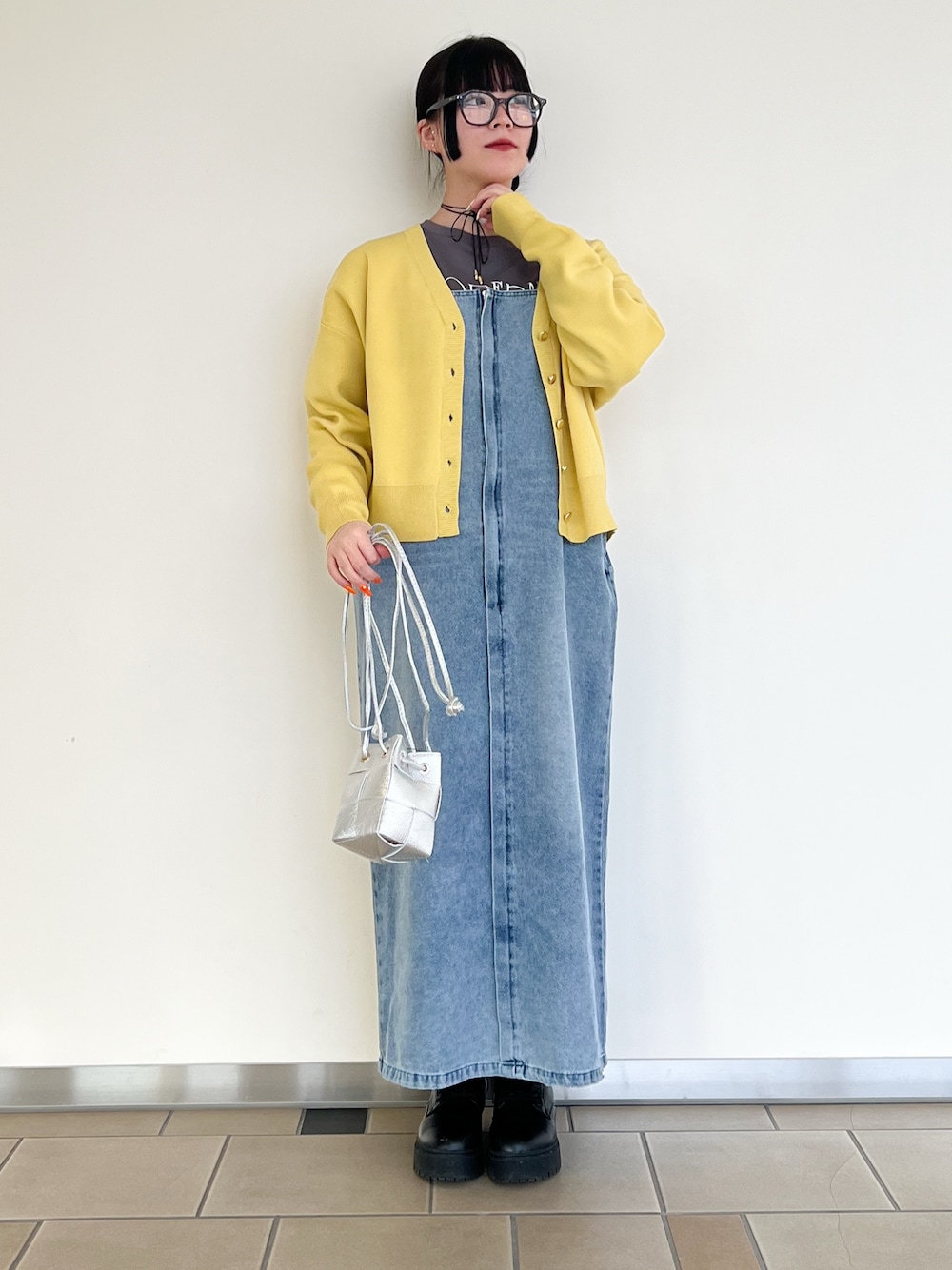 ダークトーンなのでマフラーで柄を取り入れたりラメが入ったジャケットでアクセントを足してます◎