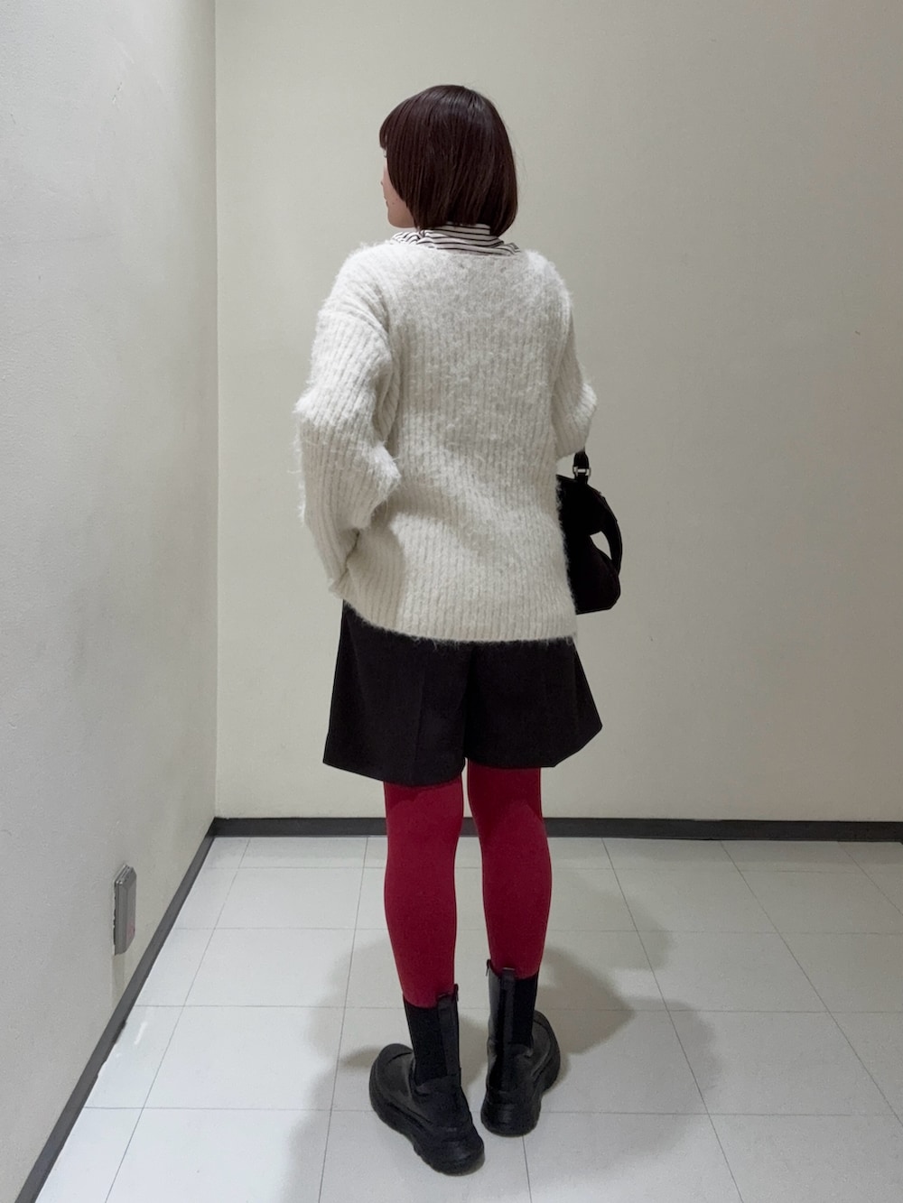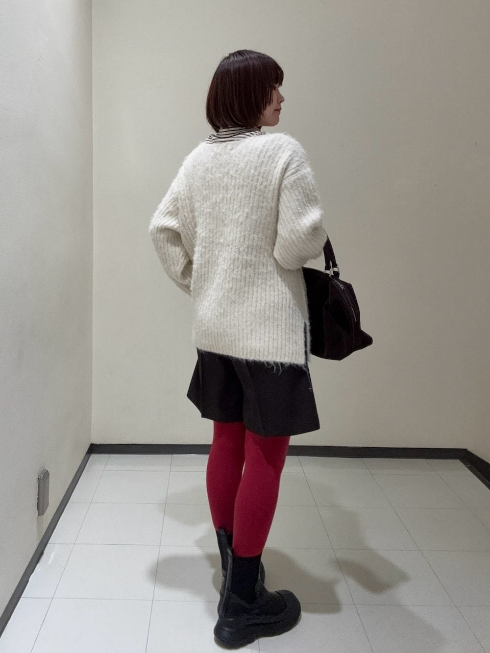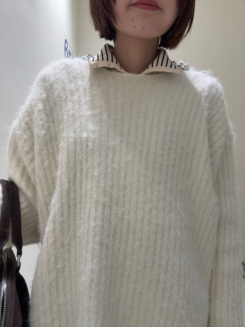 店頭でも人気なシャギーニットを主役に、クリスマスを意識したカジュアルコーデを組んでみました✨