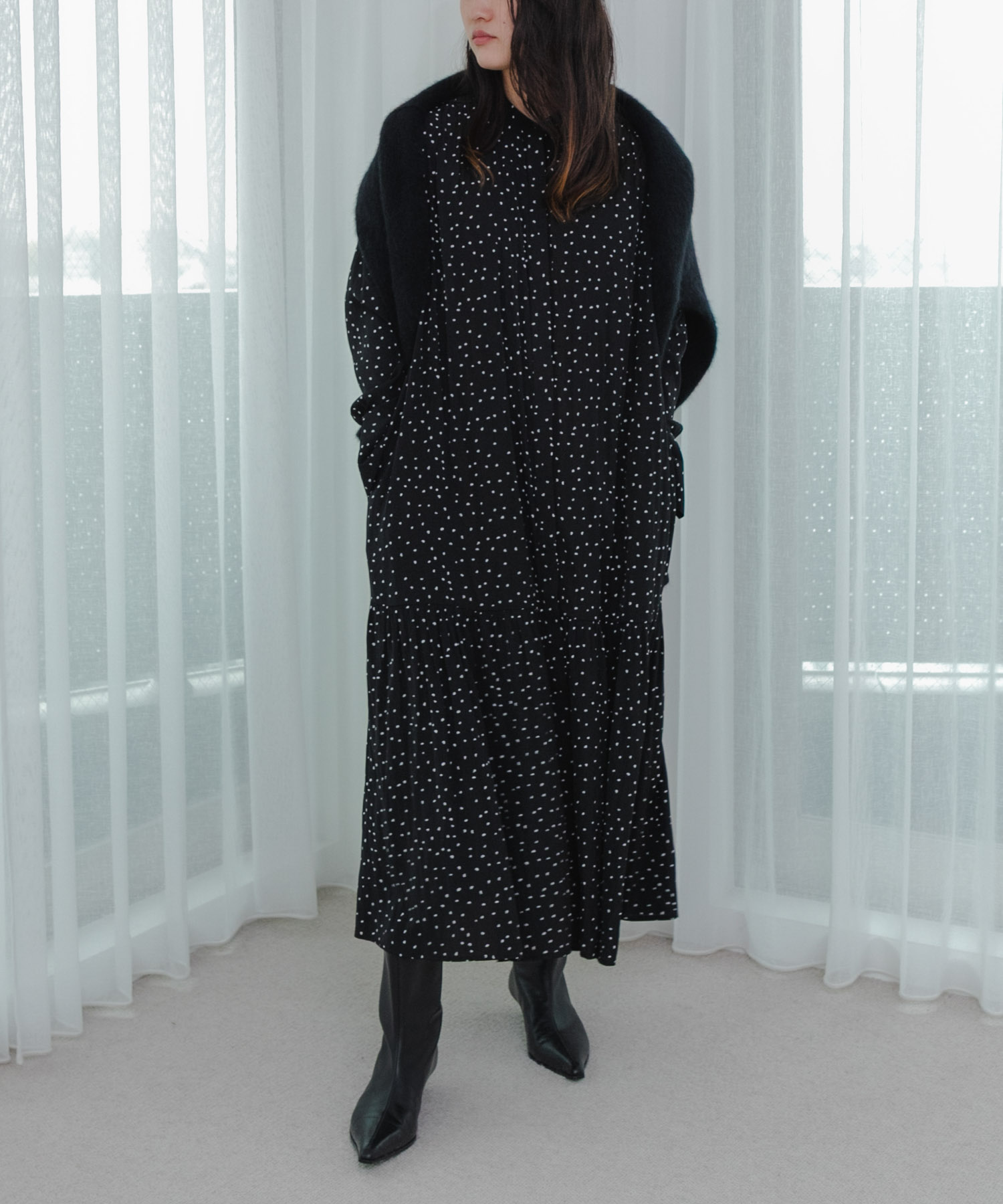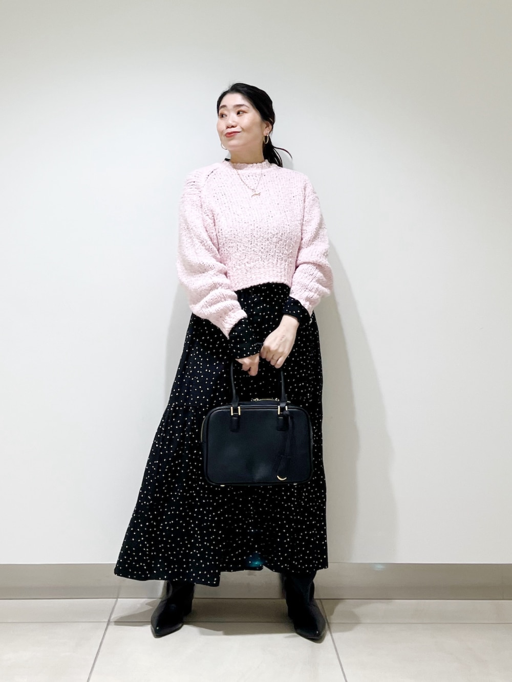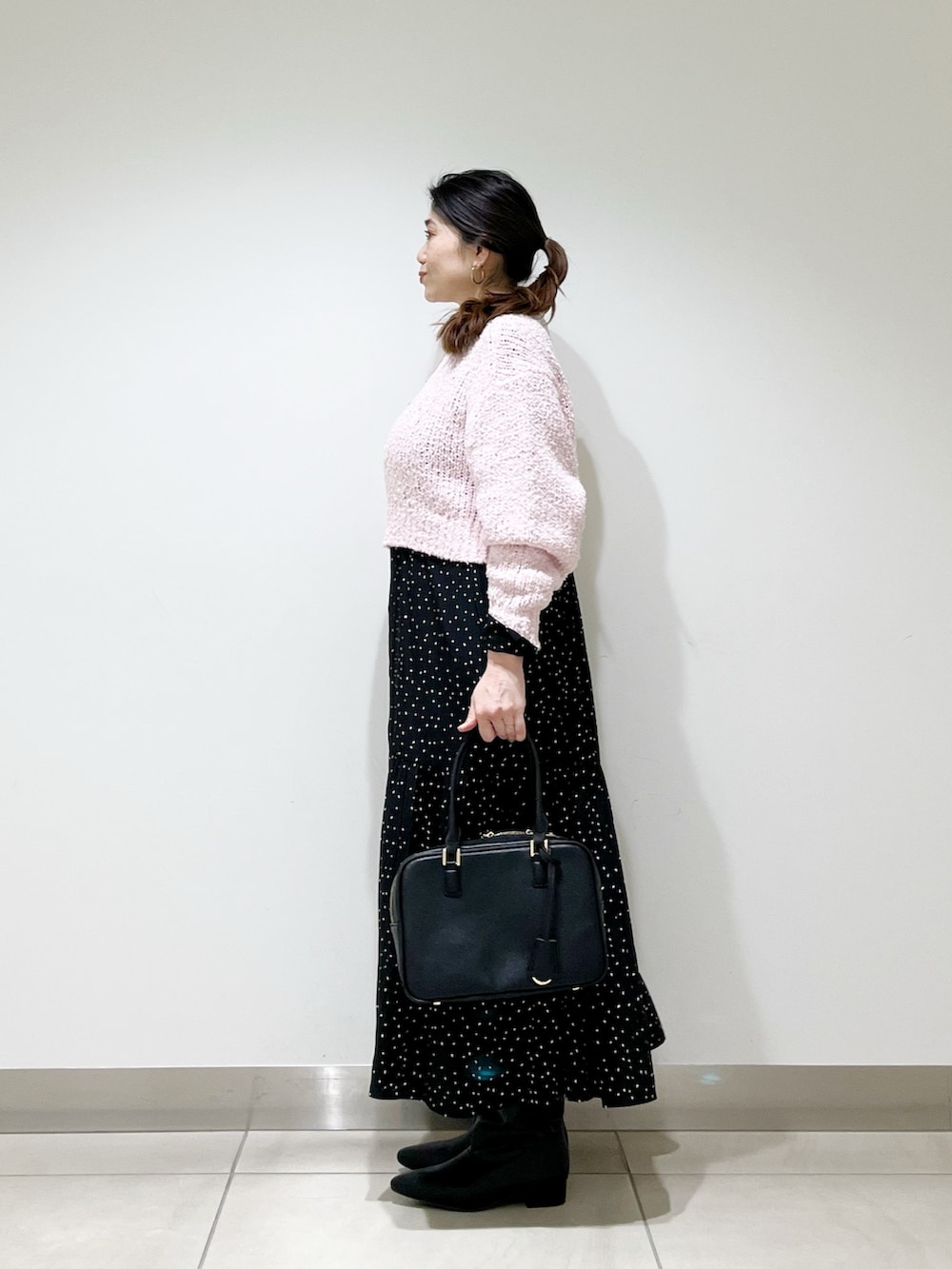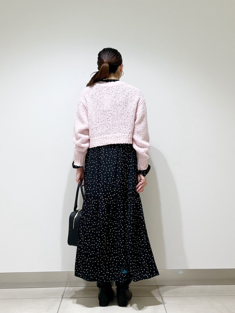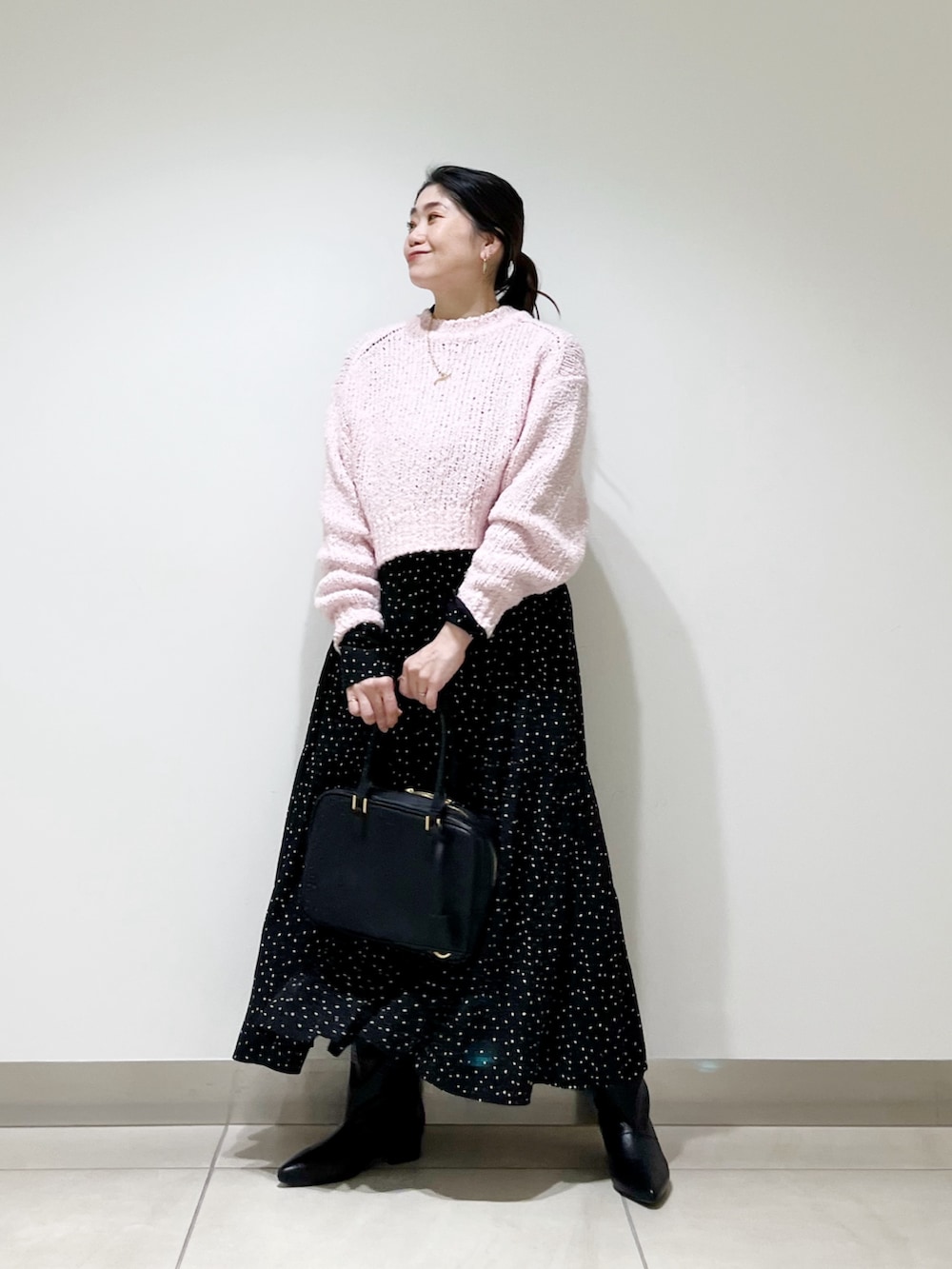 大人女子にぴったりの甘くなりすぎないニットと、ギャザーシルエットがおしゃれで可愛いワンピースをレイヤードしました☆