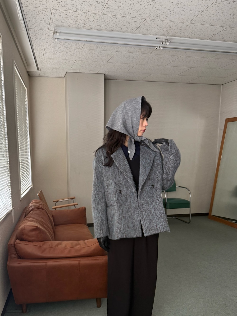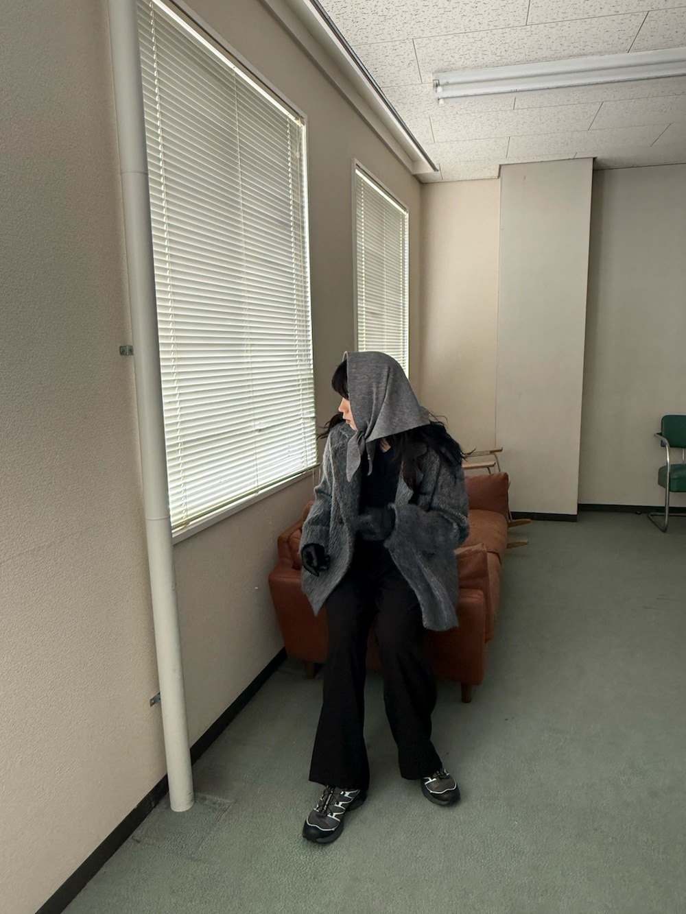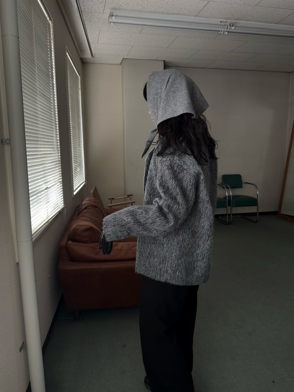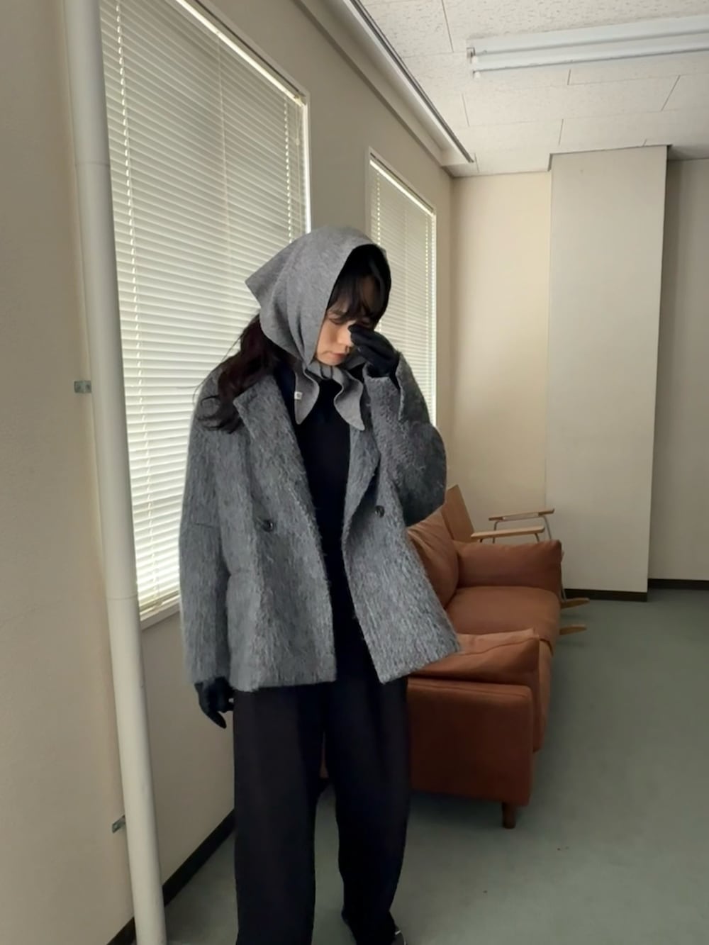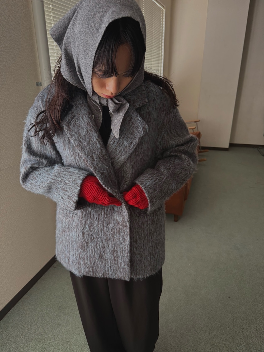 見た目にもかわいいシャギージャケットをメインにコーデ。
