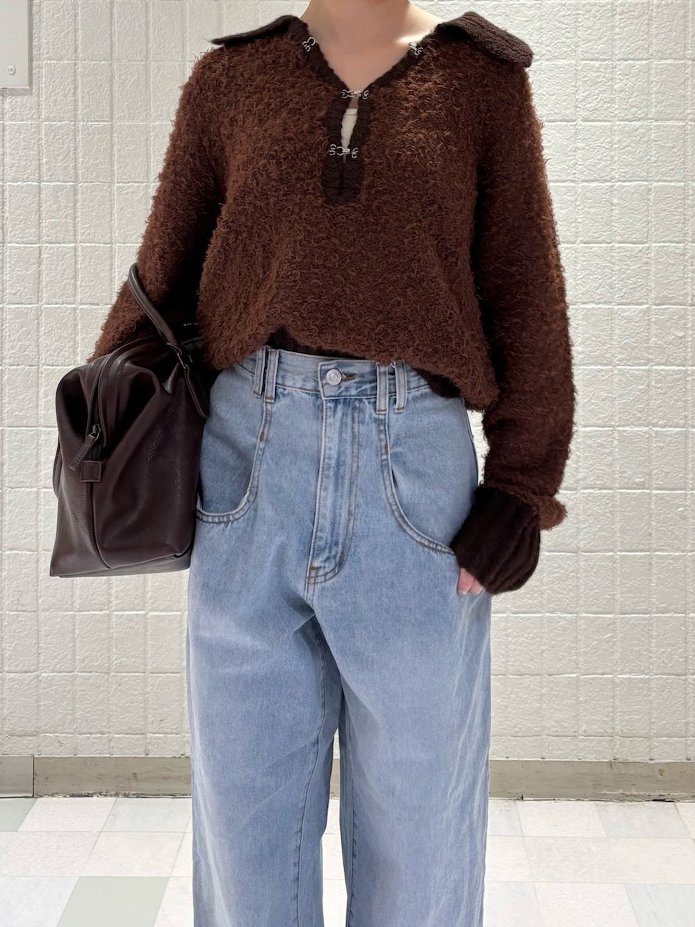ニットはホックがついているデザインで、1枚で着映えさせてくれます!