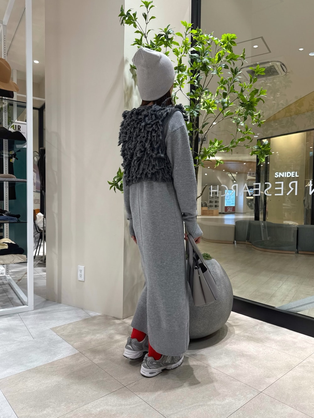 ③ループニットベストをトップス合わせで。