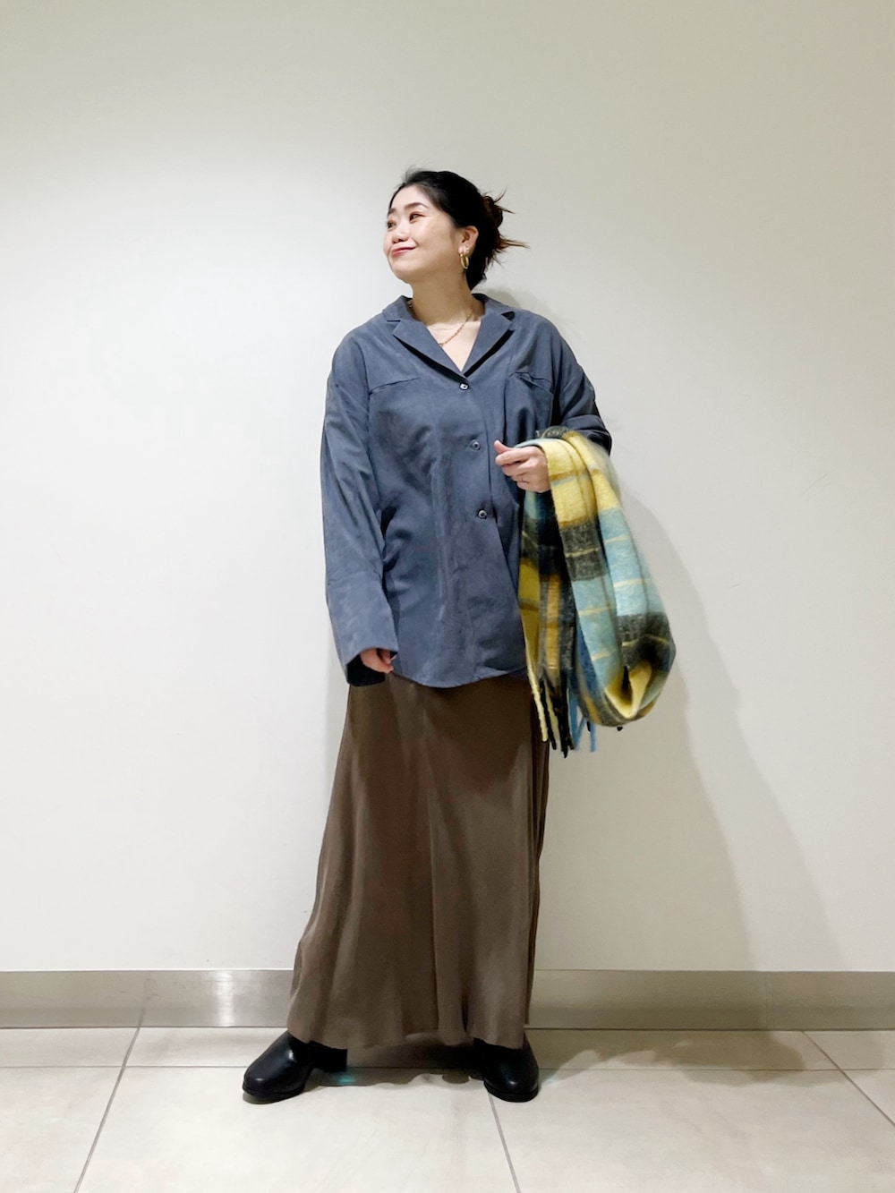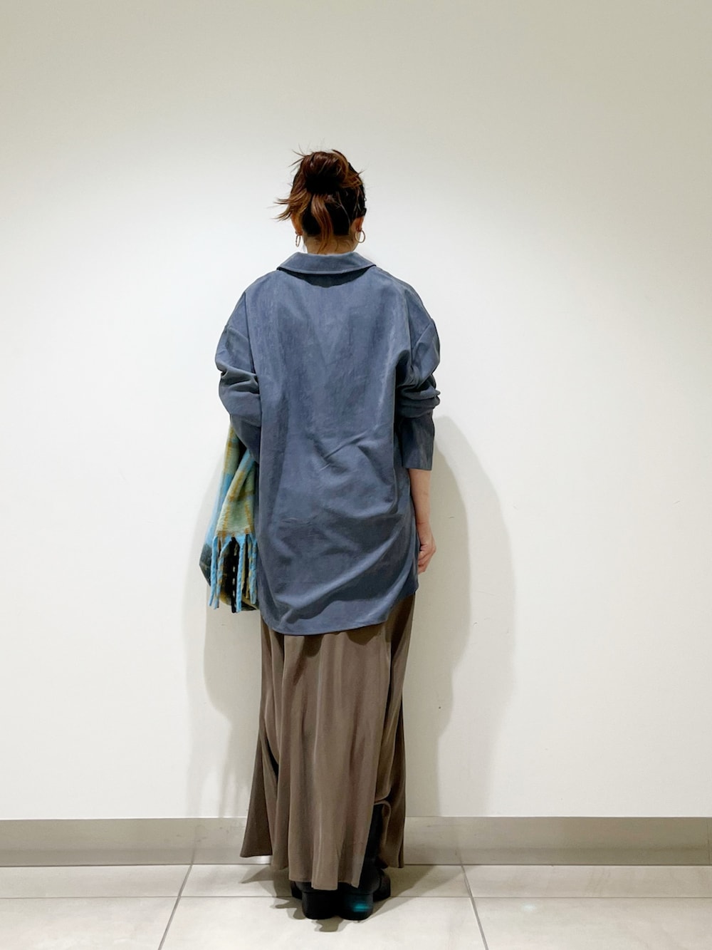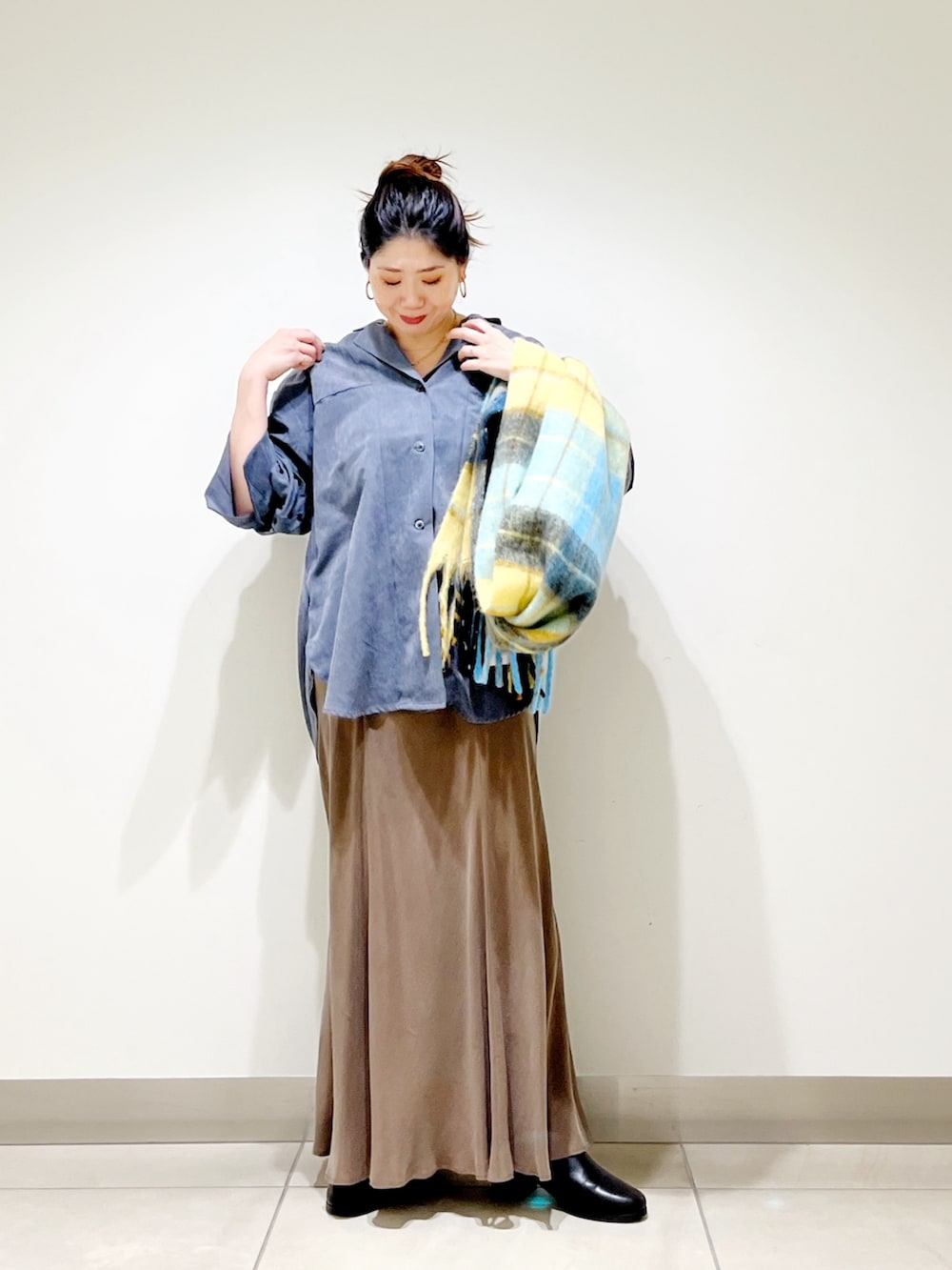 一気に抜け感を演出できるシャツを主役に綺麗めスカートを合わせました☆