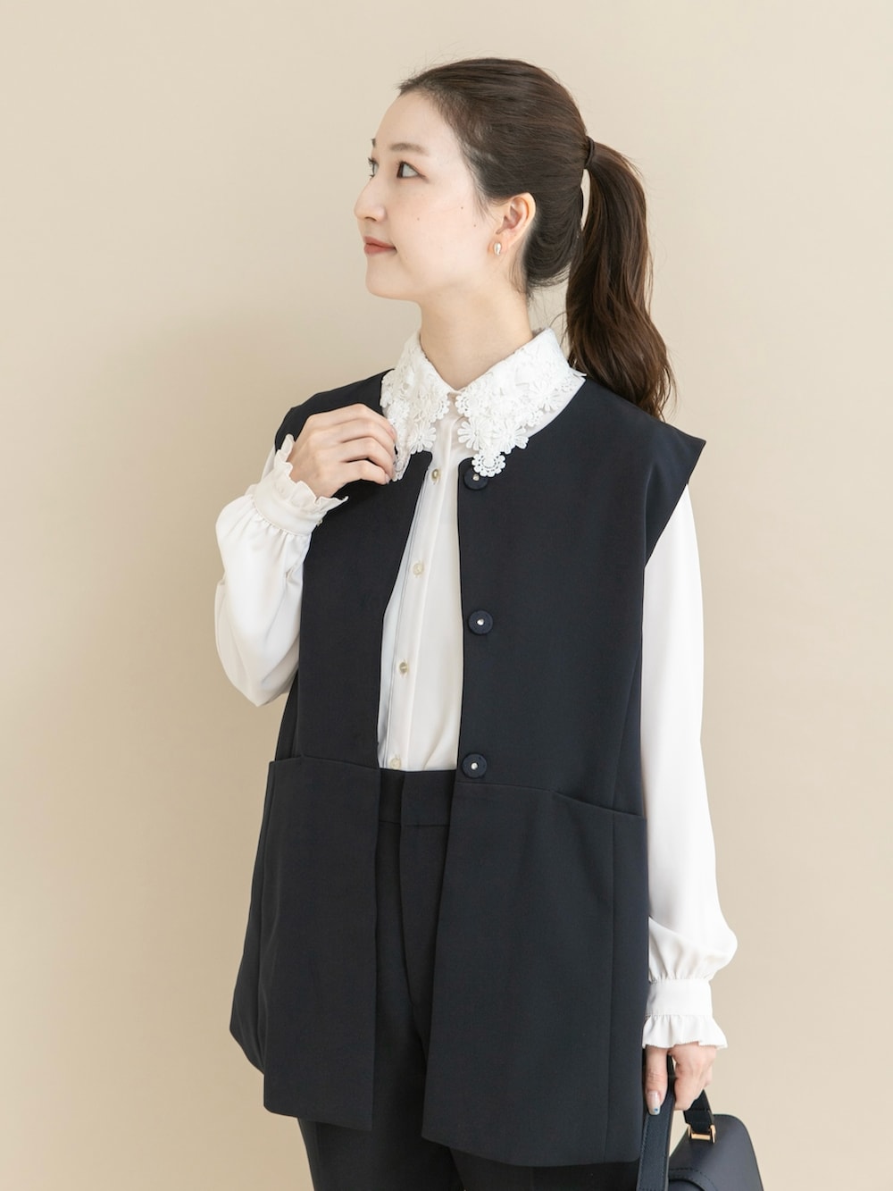 ジレは、程よいペルラムシルエットでスタイルアップ効果◎