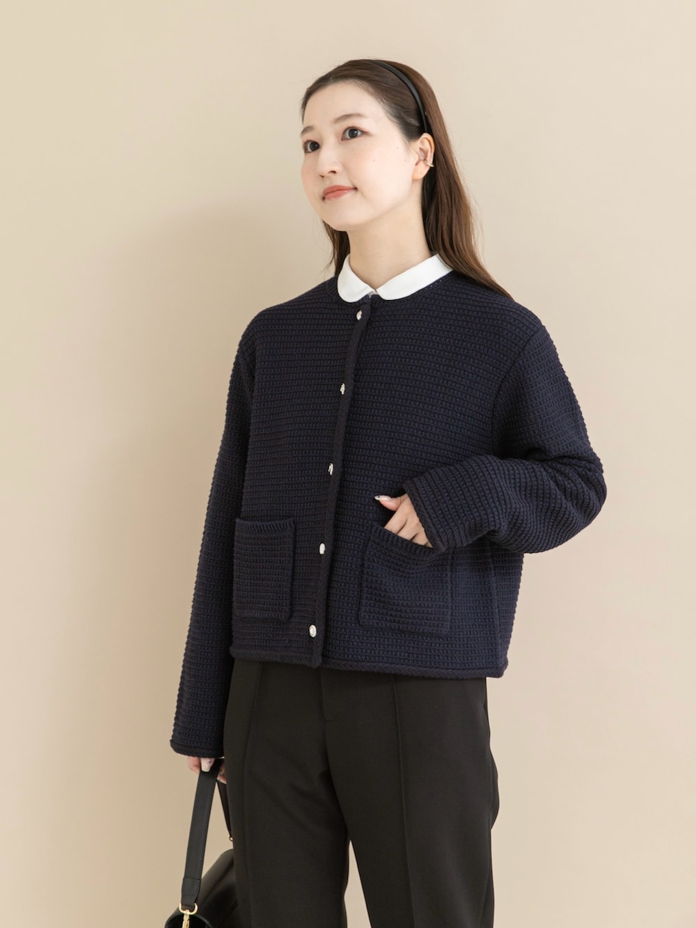 きちんと感×軽やかさを叶えたツイード風のニットジャケット!