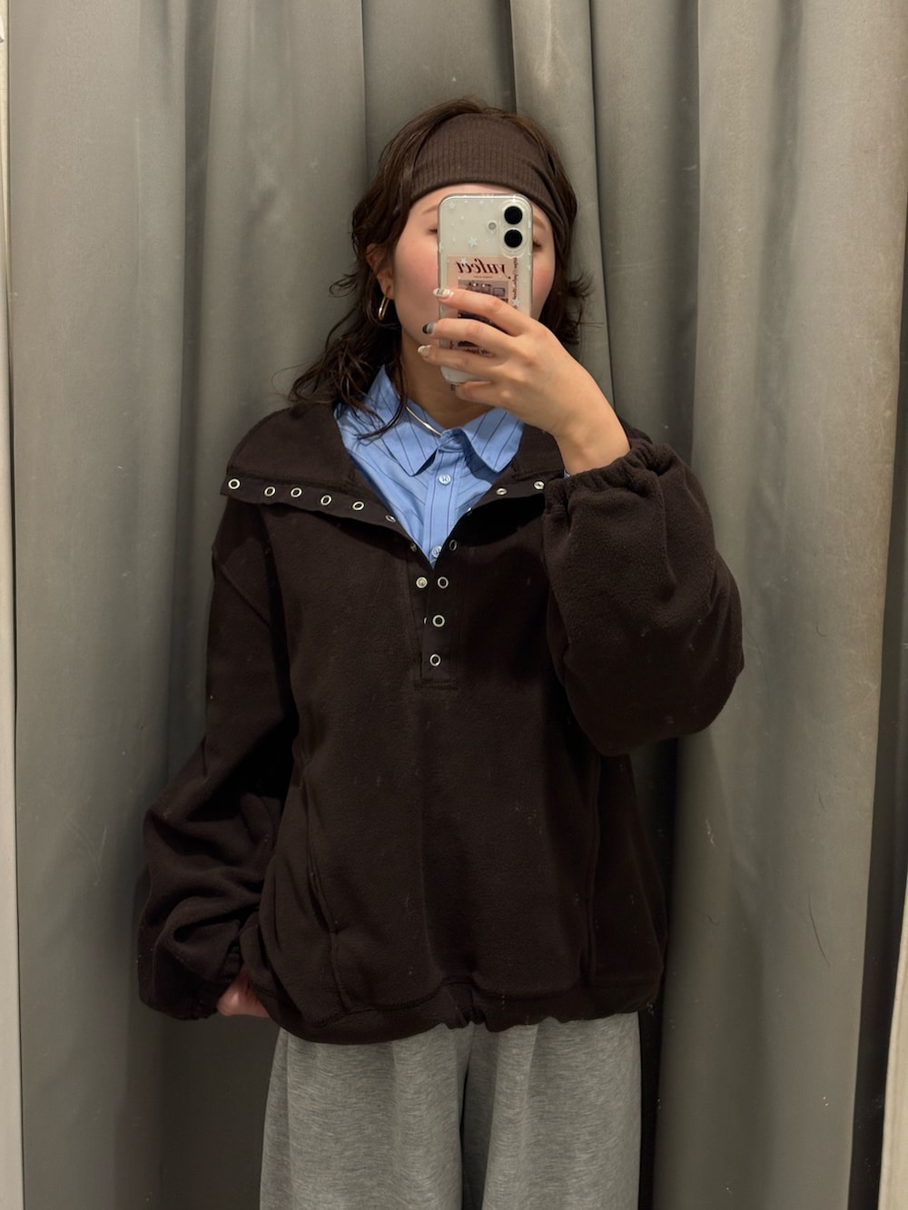 フリースの中にカッチリしたシャツを入れることでラフになりすぎずに着こなせます🙆♀️