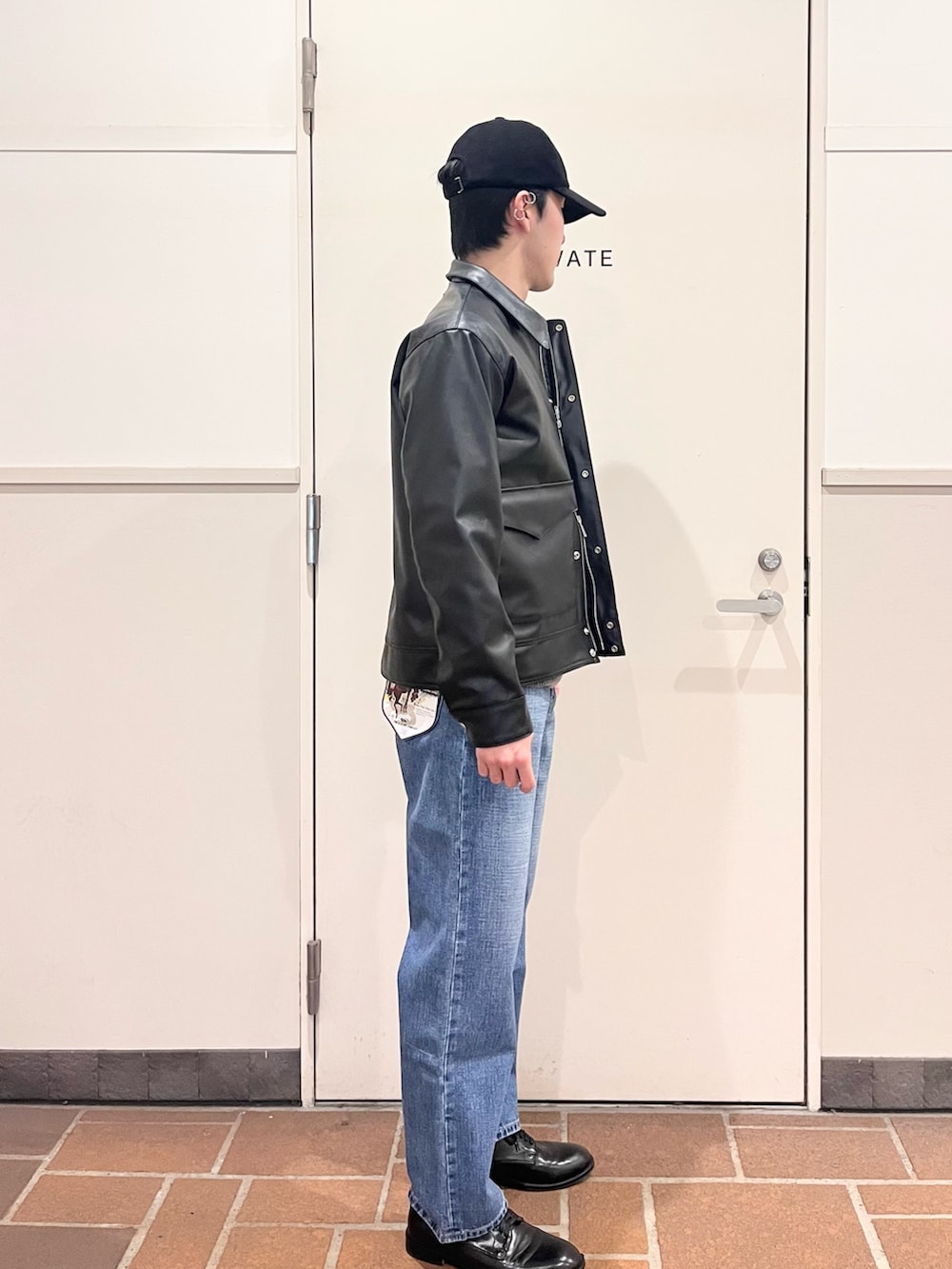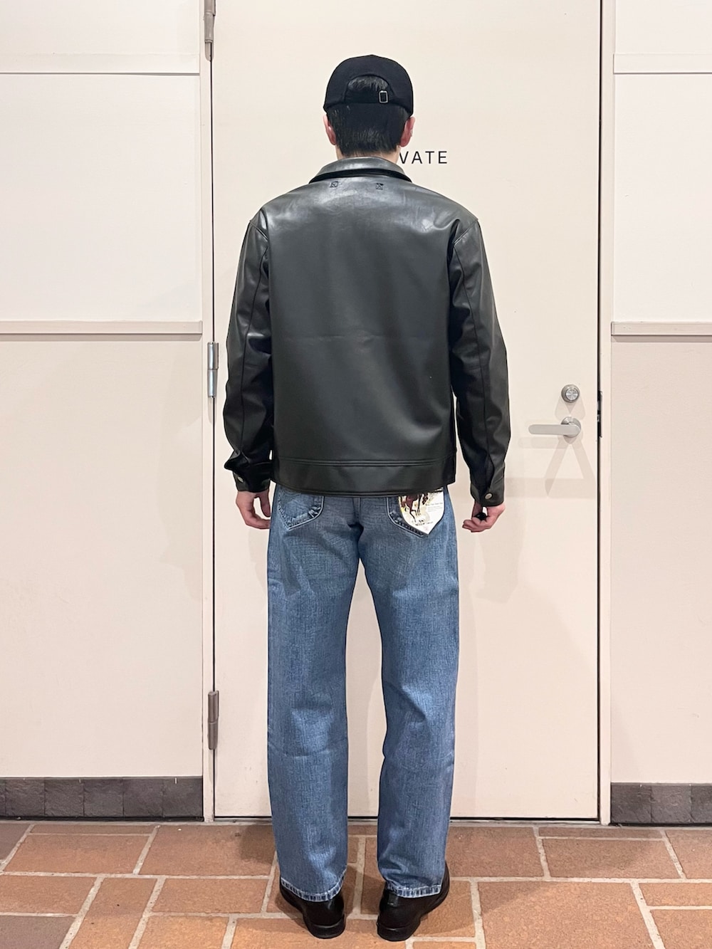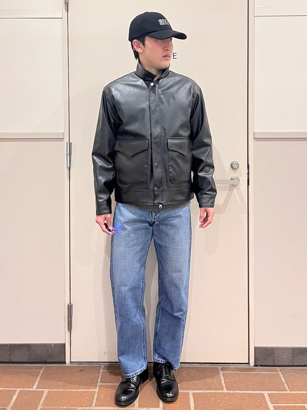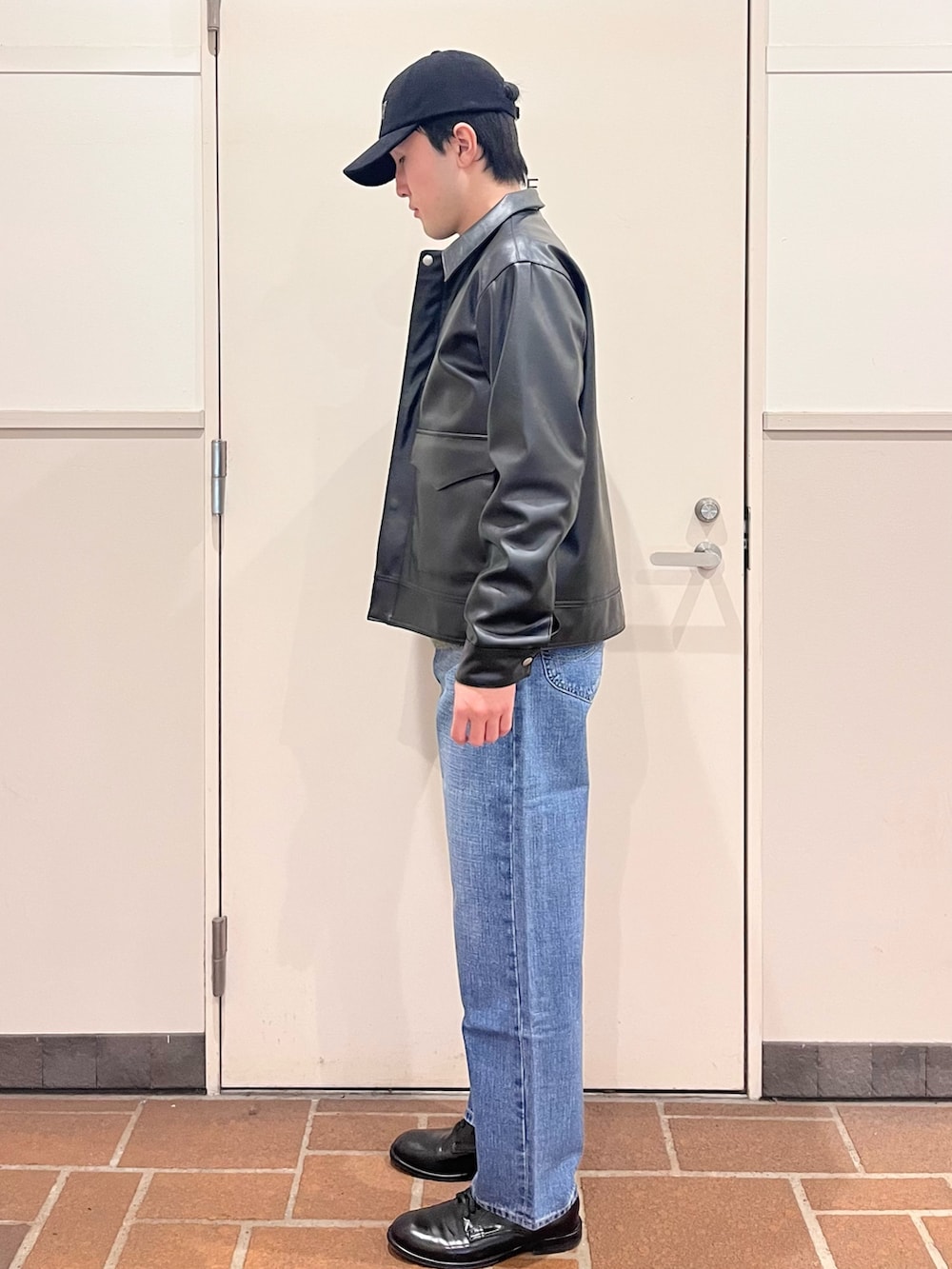 レザー系ジャケットは襟立てて着るのが私流で、寒い時便利です。