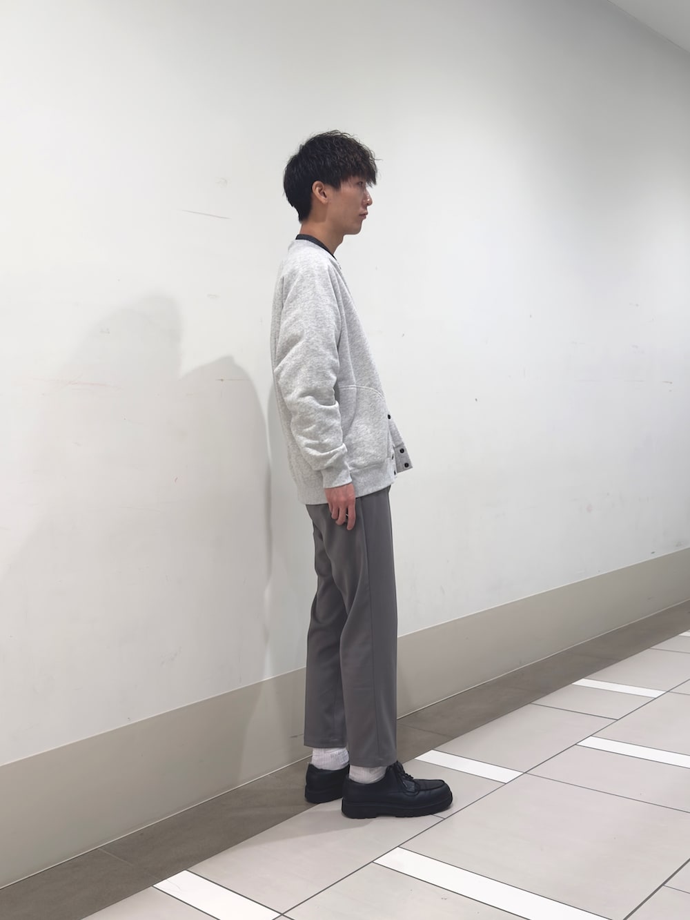 EKALの羽織とインナーに、DOORSのトラウザーパンツを合わせ、リラックス感のあるシルエットを意識しました。