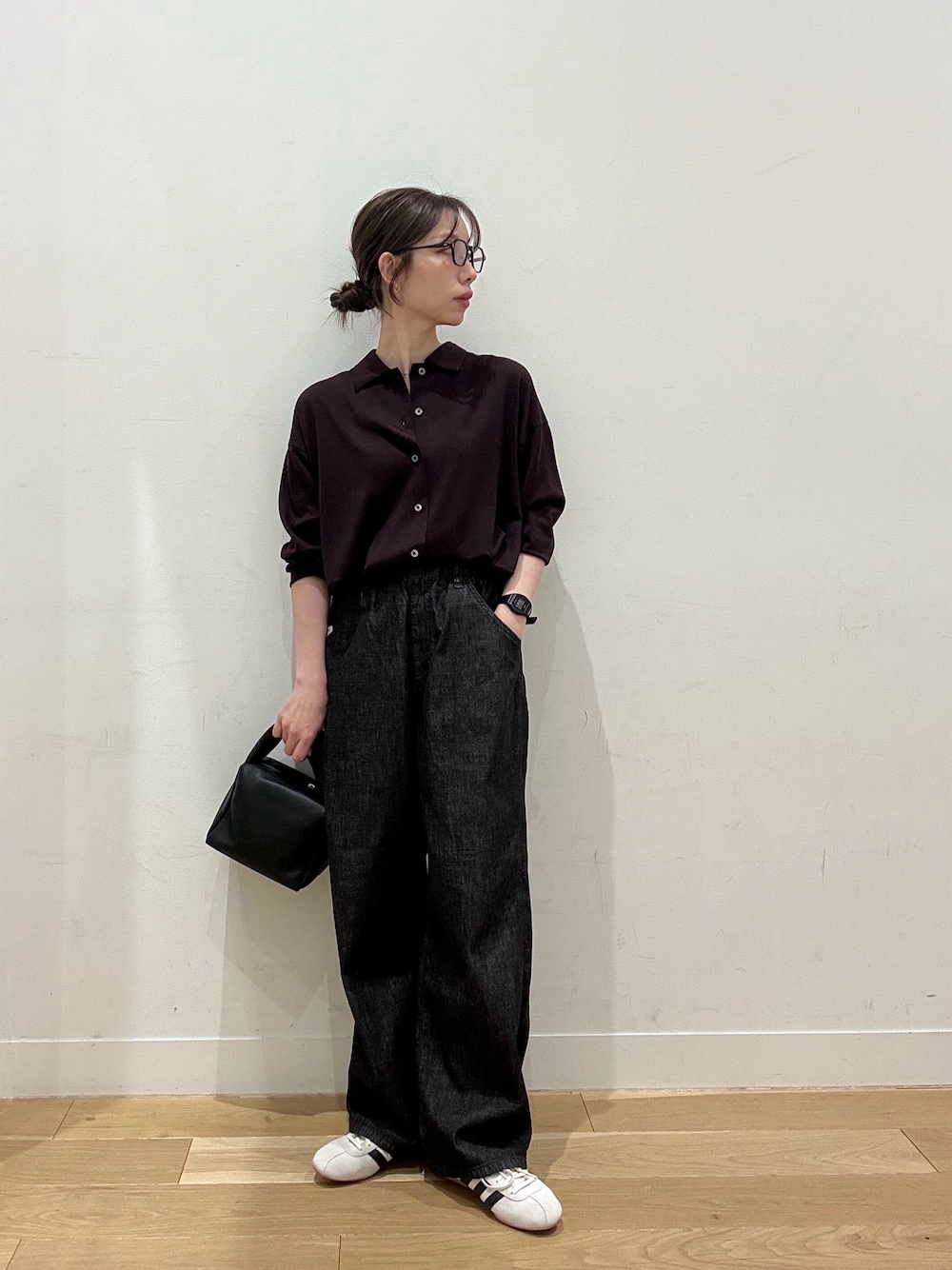 ボタンを一つ開けてVにするのもスッキリ見え◎
