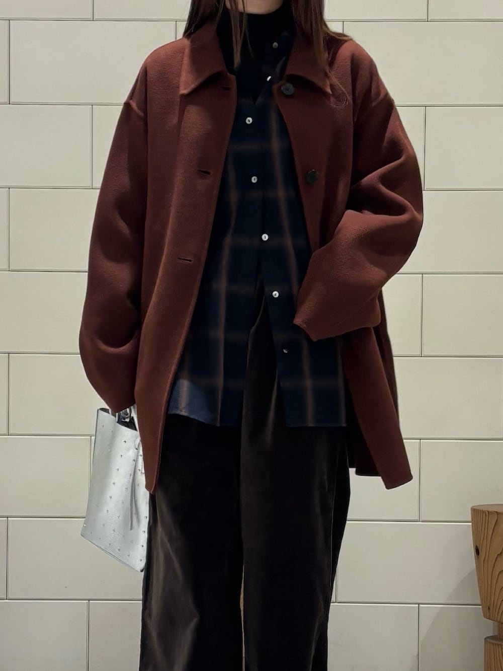 軽くて暖かいリバーコートです。ゆったりとしたサイズ感で抜け感があり、中に着込みやすいのも嬉しいポイントです。