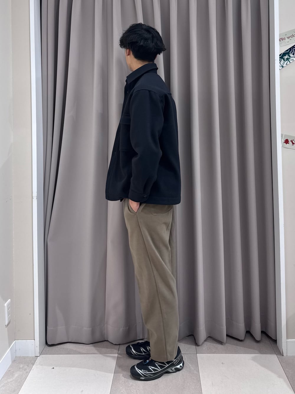 パンツも同じ様な素材感のジャージメルトン素材でセパレートっぽく。パンツはウール混でさらに暖かい。