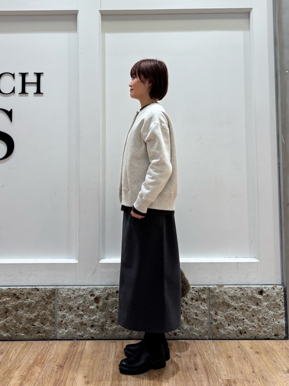 新入荷アイテムのカーディガン着用しています。裏起毛なのであたたかいです。スウェット生地なのでパンツと合わせればカジュアルに、スカートと合わせれば綺麗めにも使えます。お洗濯がしっかりできるのもいいですね◎