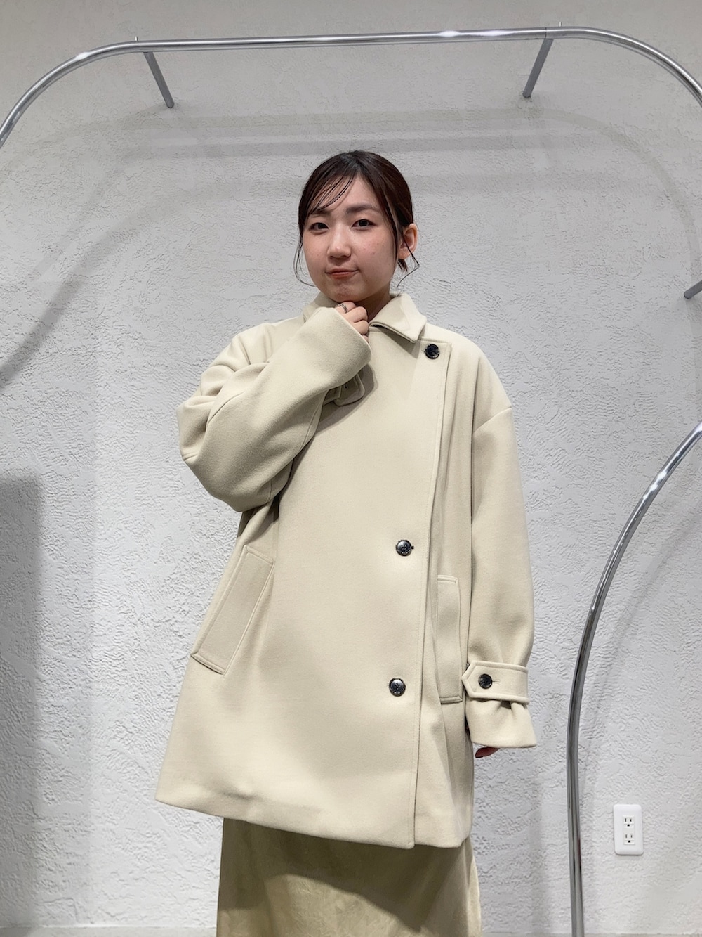 店頭で人気のBIGカラーミドルコートの色をメインにコーデを組みました!