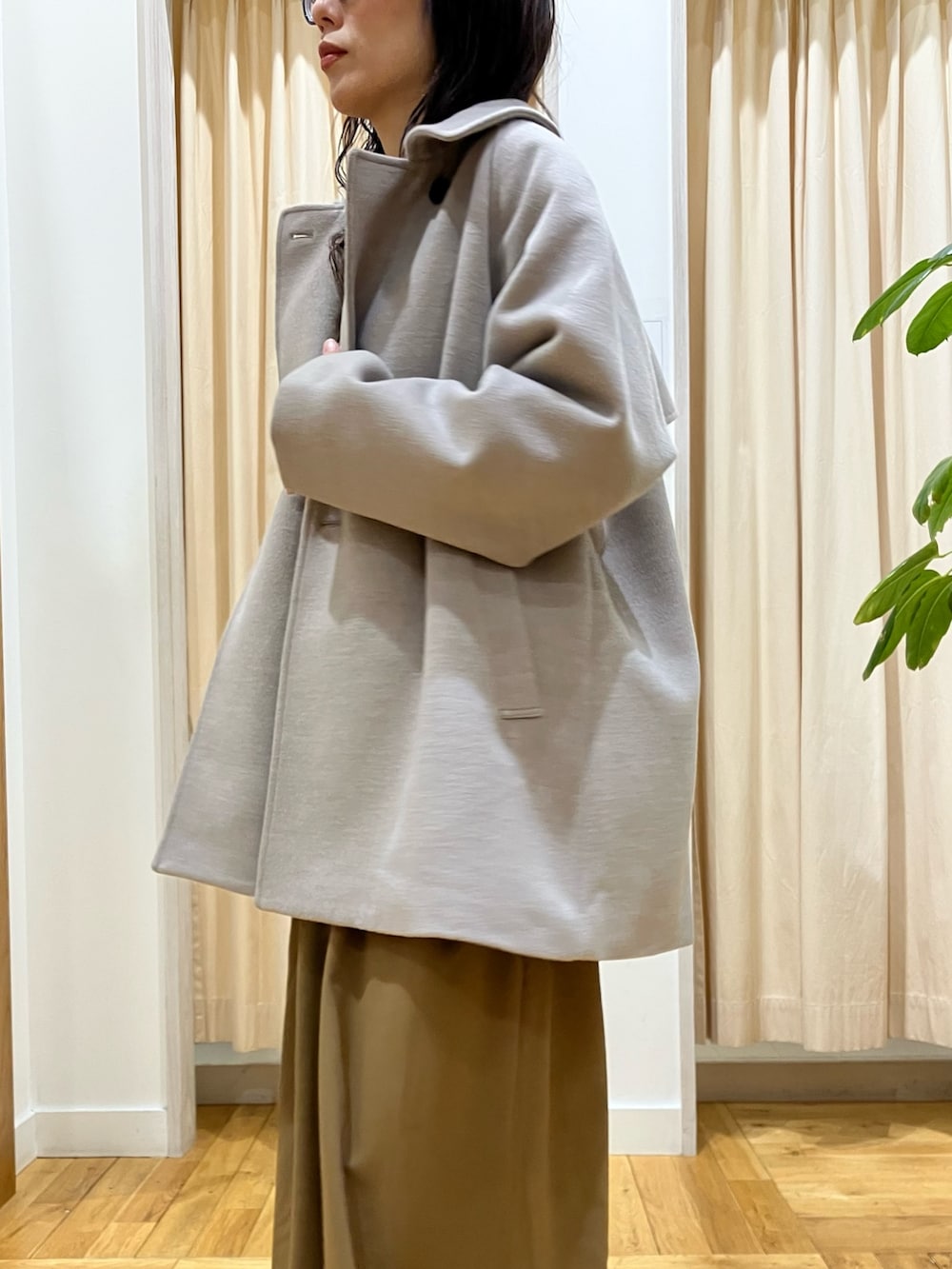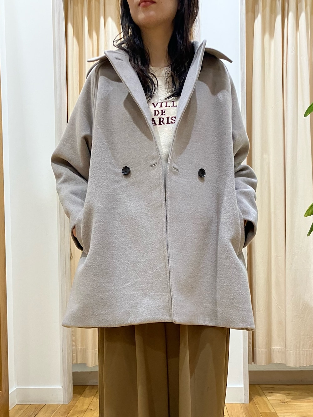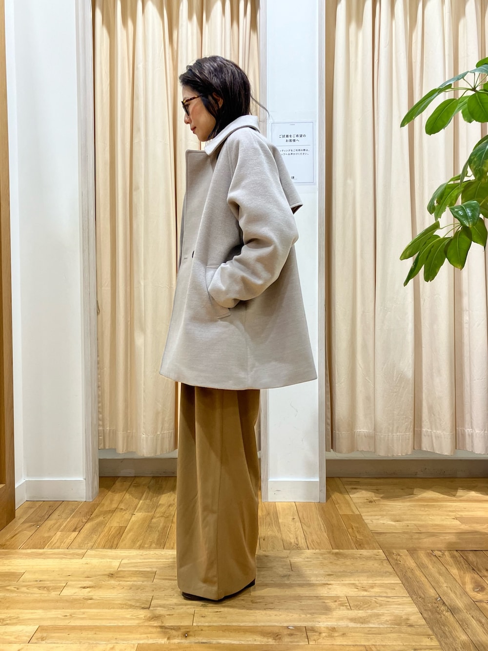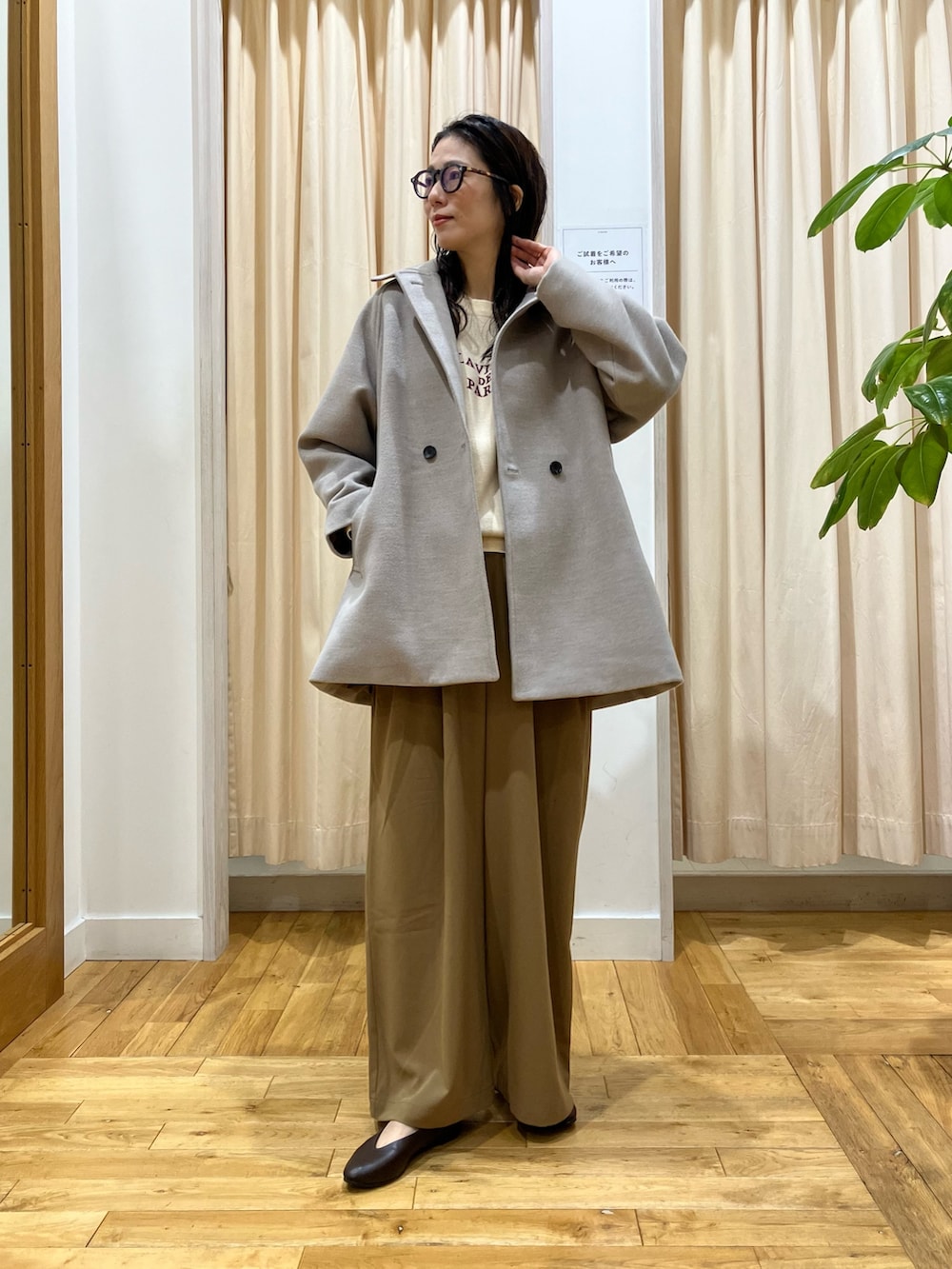 身幅もゆったりのワイドシルエットなので、厚手のニットもストレスなく着ていただけます。柔らかい杢ベージュのカラーがおすすめです◎
