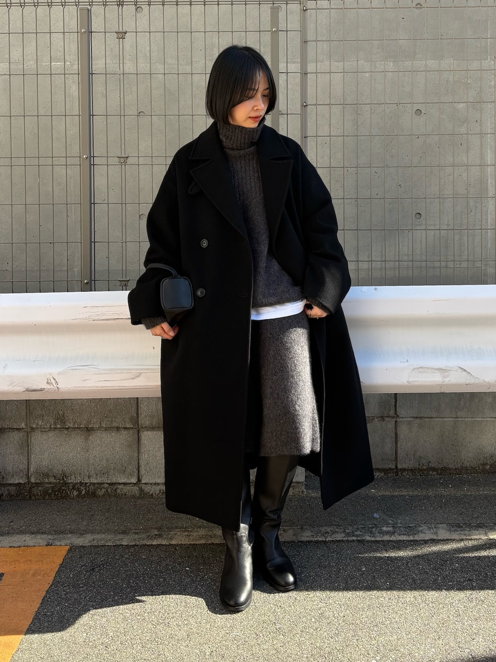 高めでゆったりとしたタートルネックが、こなれた抜け感を演出。