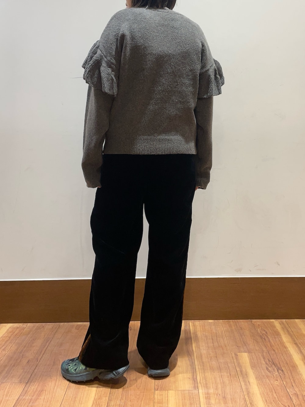 フリルが可愛いニット。
