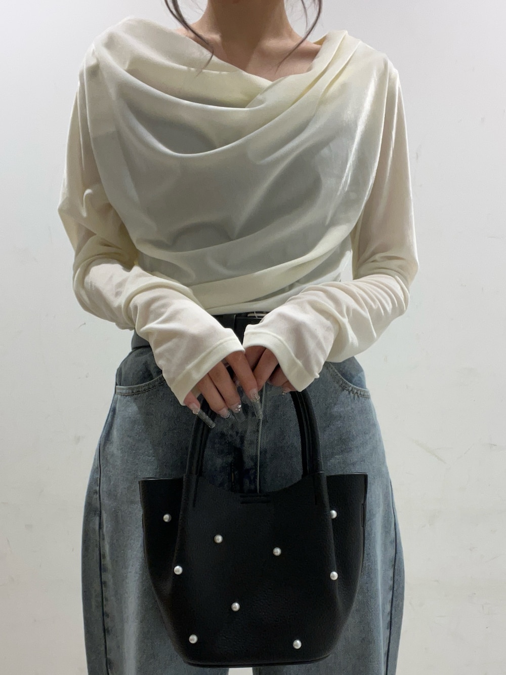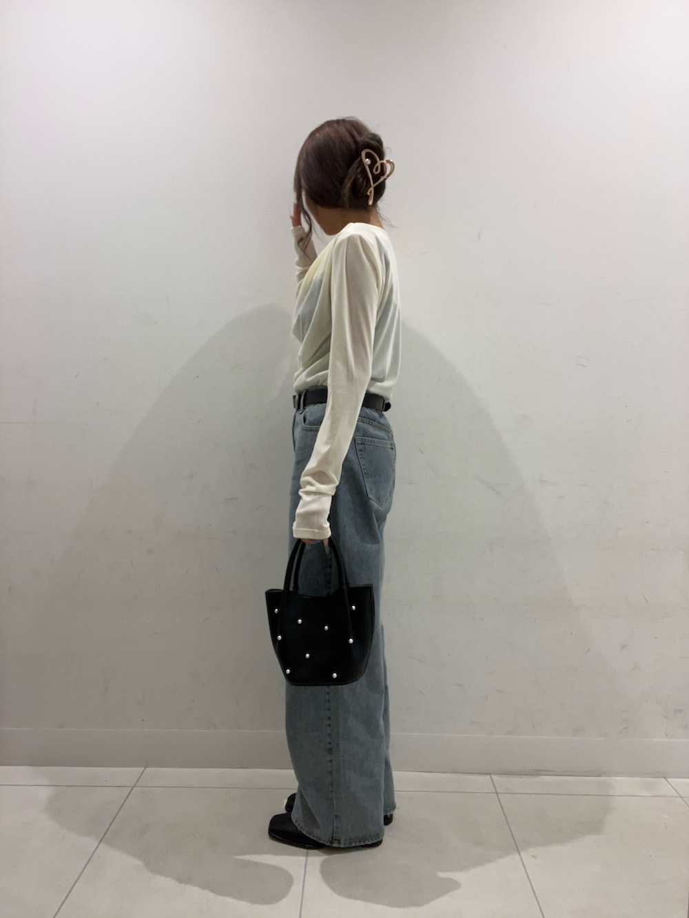 ドレープトップスで抜け感を出しながらデニムと小物を締まる色にしてバランスをとりました♪