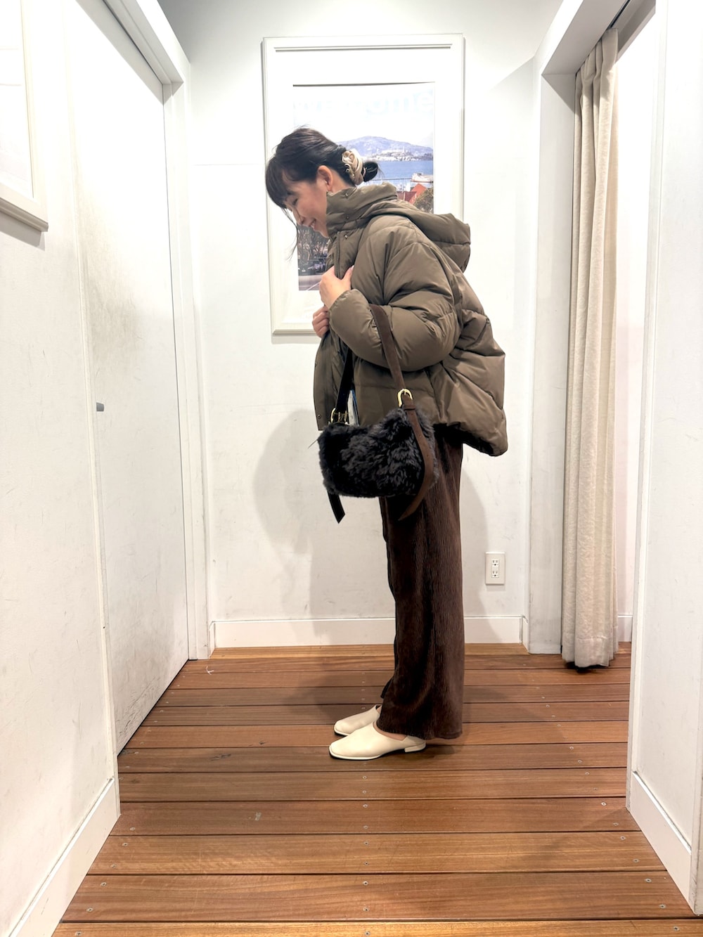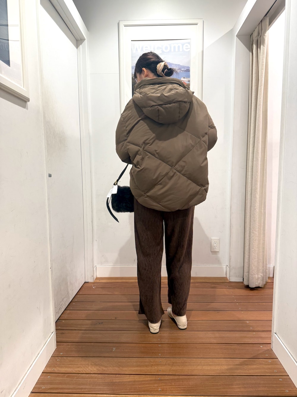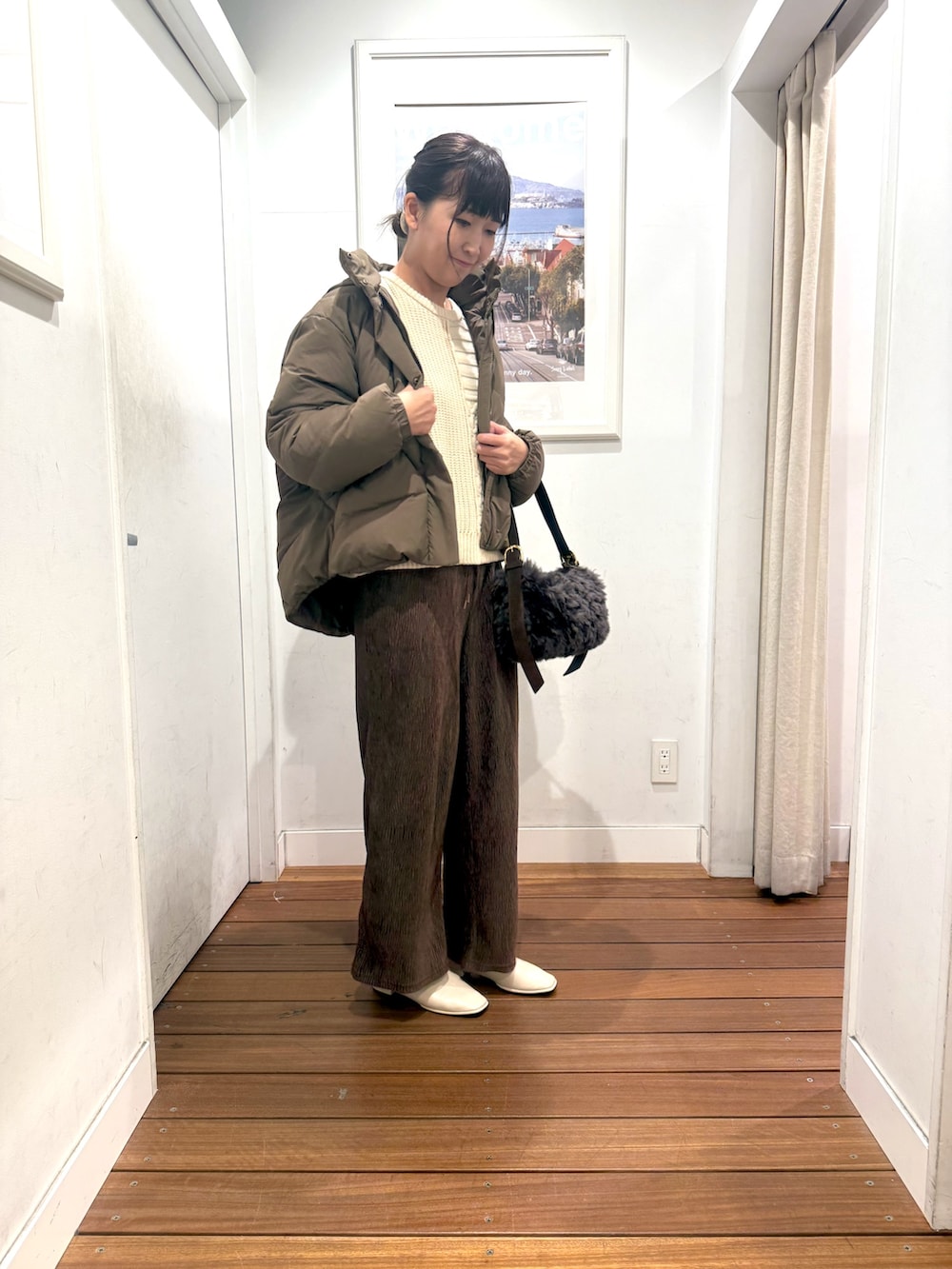 今日は新作のベロアプリーツイージーカットパンツを使ったブラウンコーデ。
