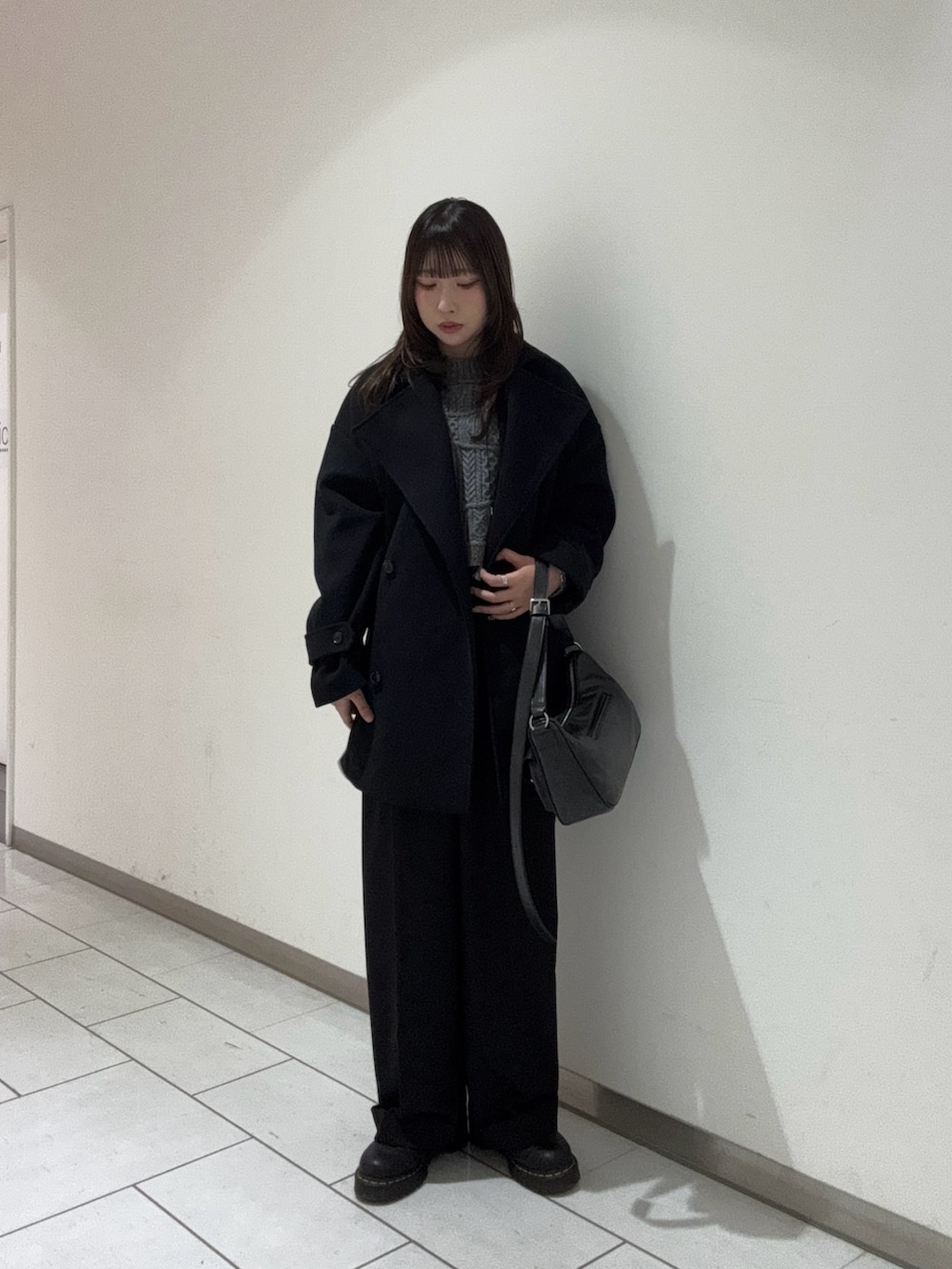 ブラックとグレーのシンプルなモノトーンコーデです!トップスのニットはショート丈でロングスカートやハイウエストのデニムとも相性が良さそうです!