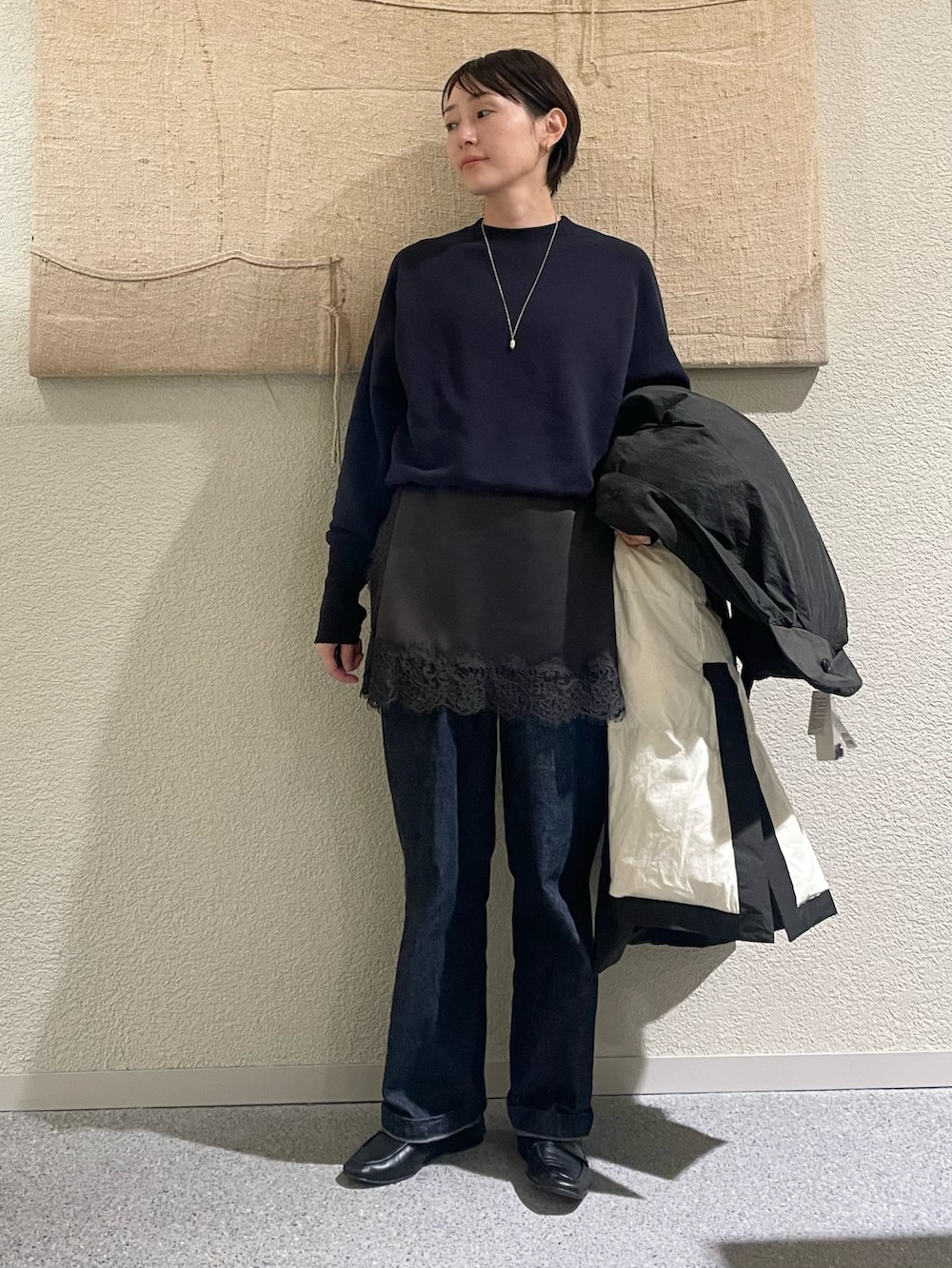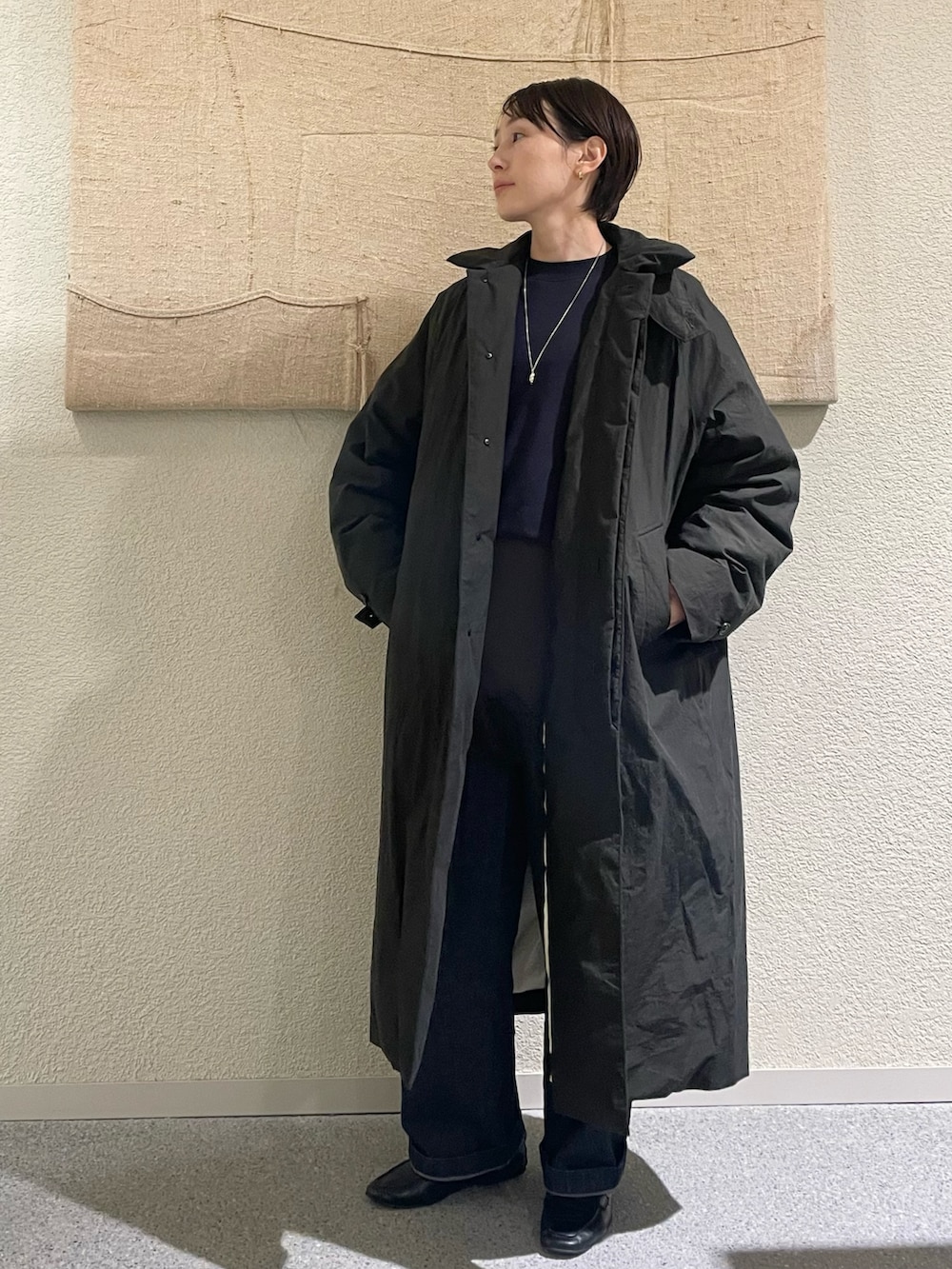 リアルスタイルにコットンダウンコートのINK BLACKをバサっと合わせてかっこいいスタイルで✨