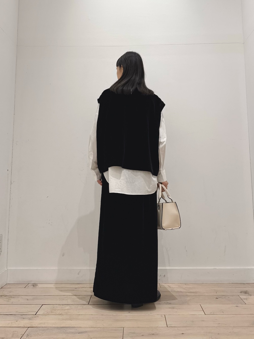 デニム等と合わせたりもかわいいですが、やはりセットで着たくなります☺️今回はシャツを出して少しラフに着てますが、セレモニー関連にもおすすめです!