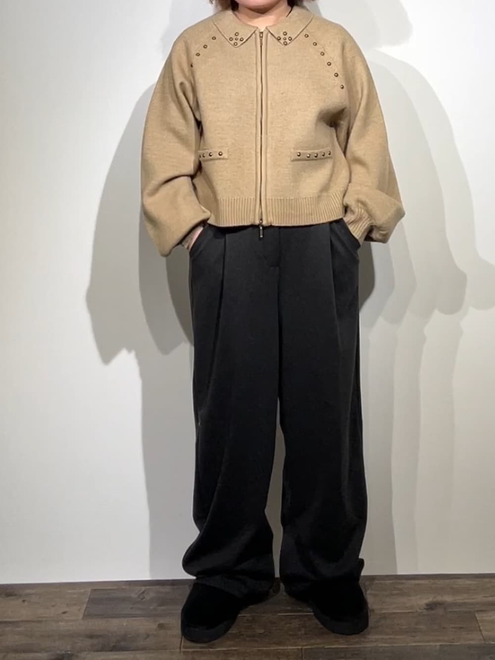 今回はスタッズデザインカラーカーディガンを使用したコーディネートを組んでみました✨