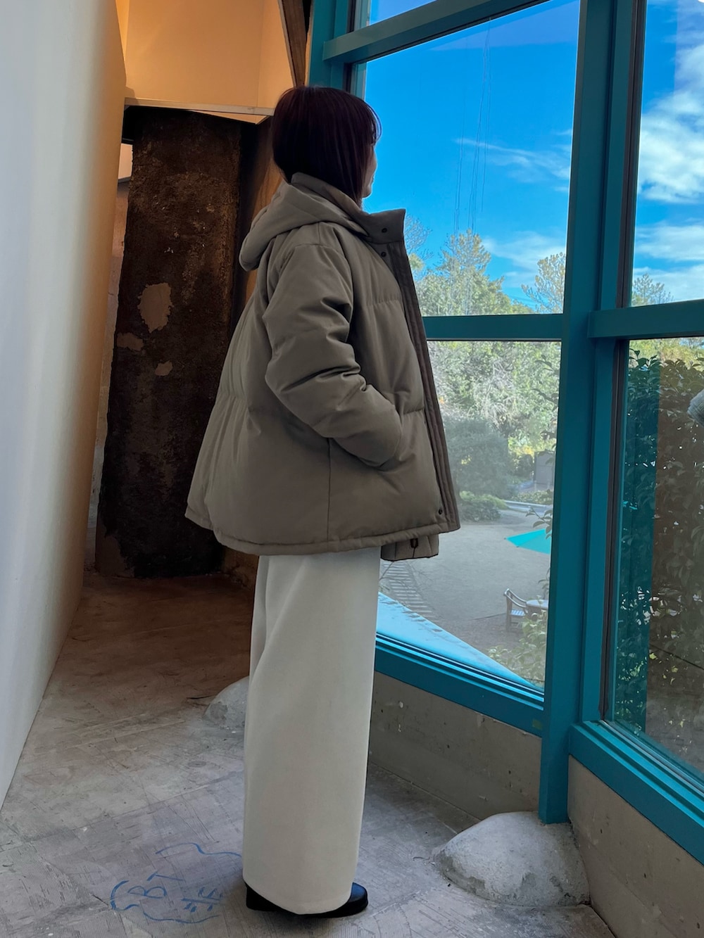 きれいめにも着られるのがこのミドルダウンの魅力。