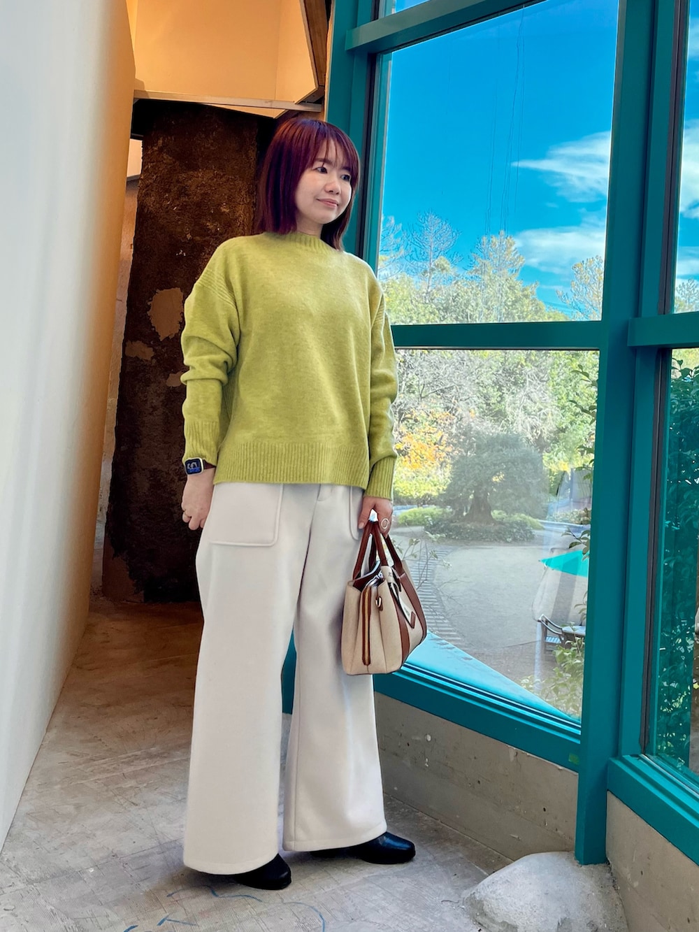 ボトムスはメルトンパンツの ECRU を合わせて、