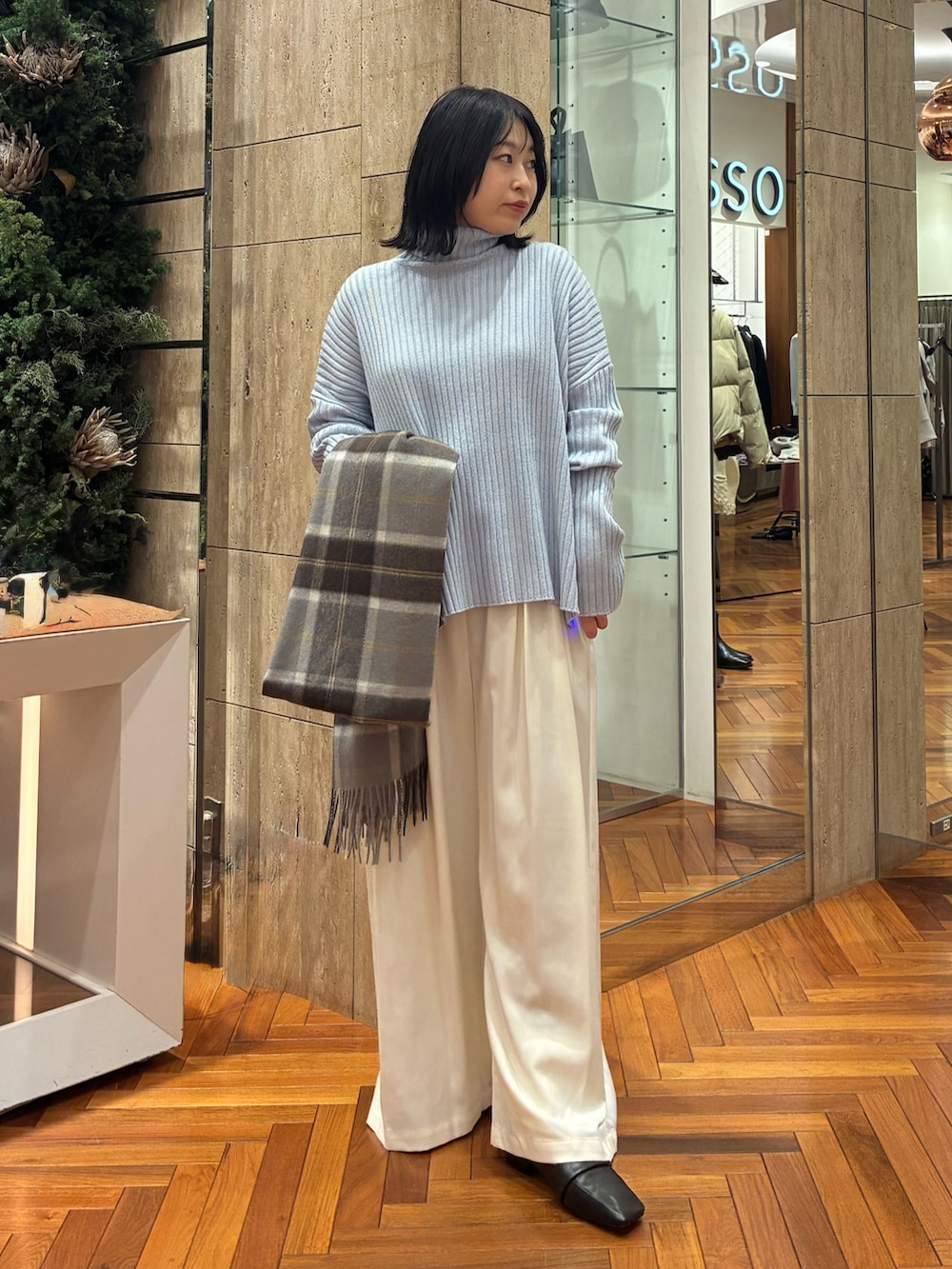ROSSOカシミヤ混チェックストール- カラー: