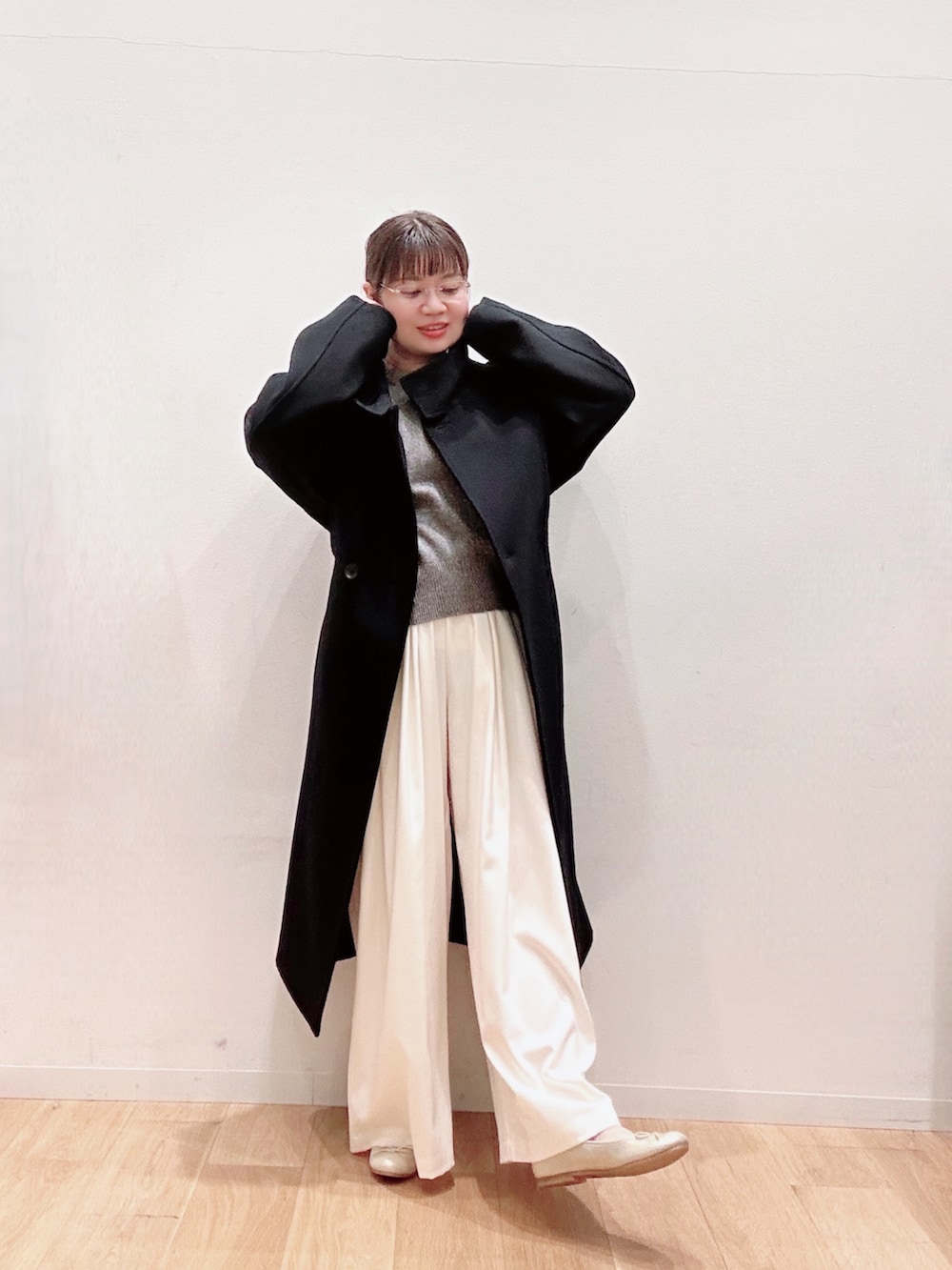 ボトムは36をワイドシルエットパンツ💛